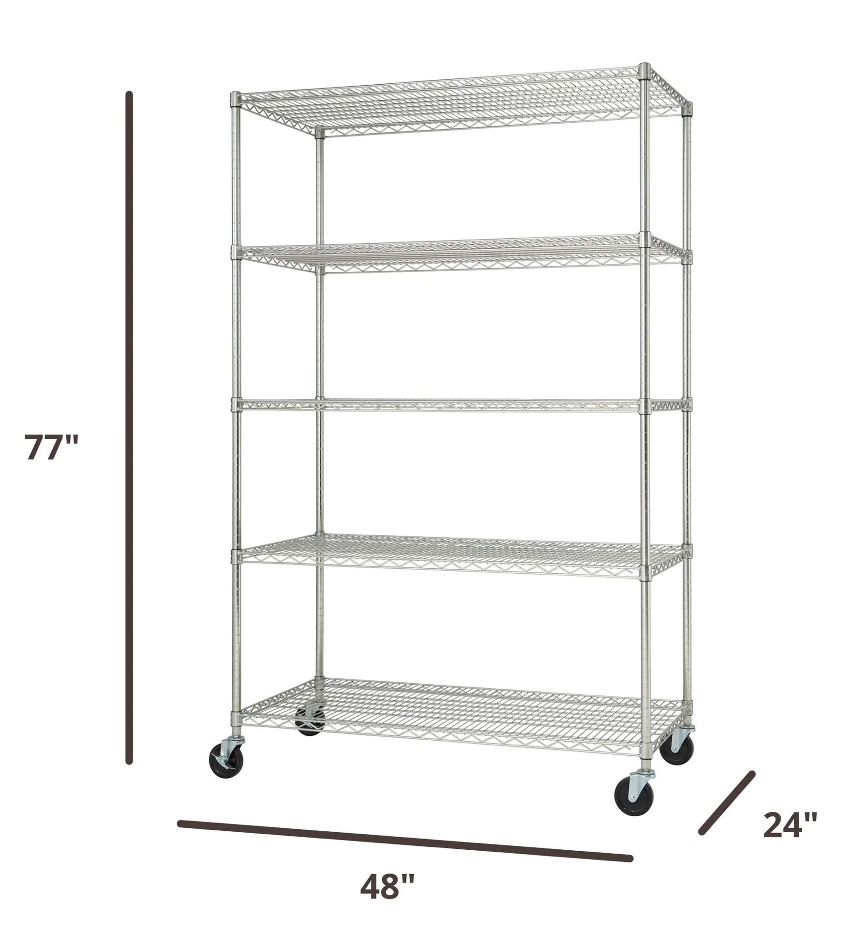 TRINITY EcoStorage 5-tier Wire Shelving Rack 48" x 24" x 72" NSF, Includes Wheels