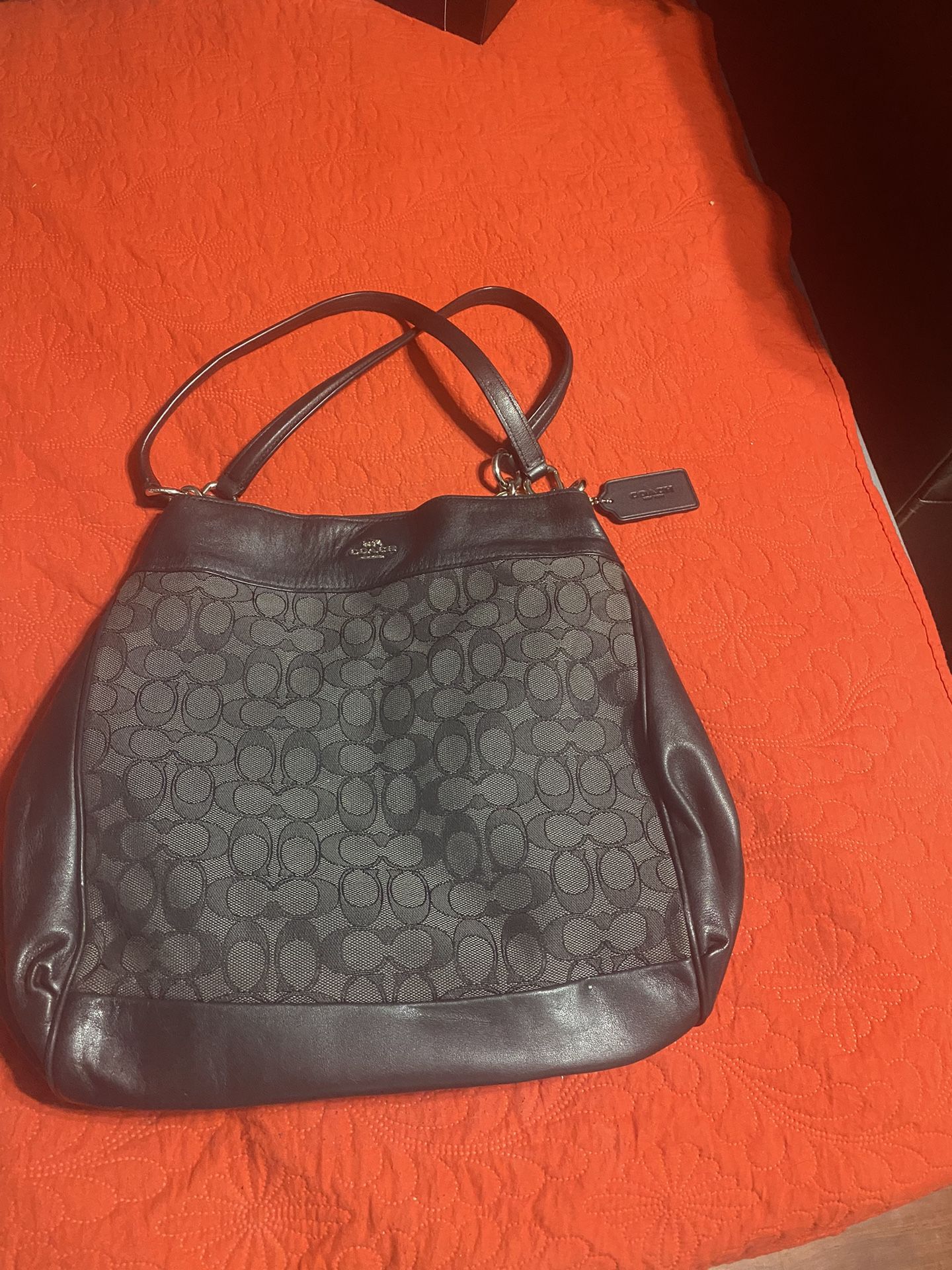 Coach, Lexy, Gray Signature Canvas and Black Leather, Hand, preowned