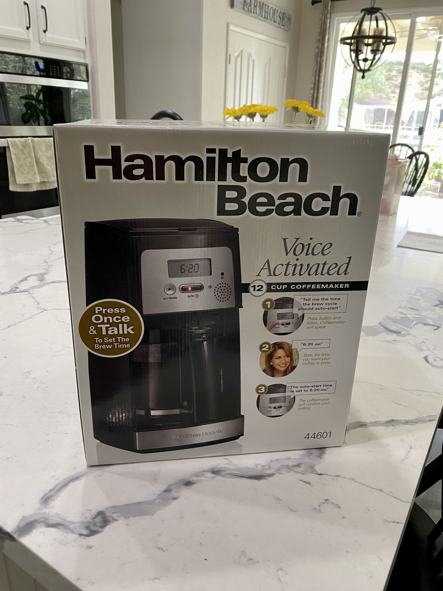 Hamilton Beach voice activated drip coffee maker. It is new in its original sealed box. Pick up only in Acton.