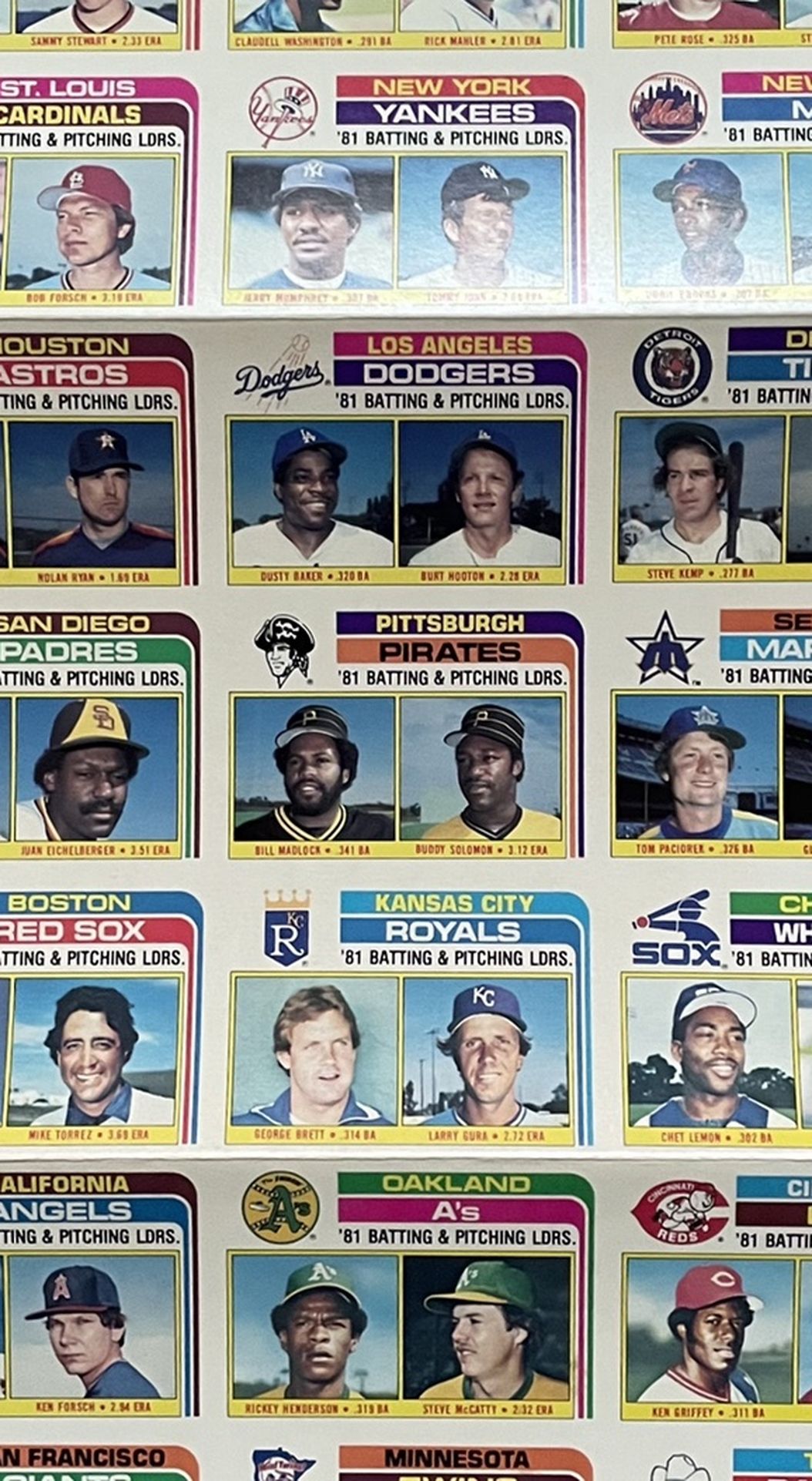 This 1982 Topps baseball leader uncut sheet. Very good condition. “Sold as is” Cash only