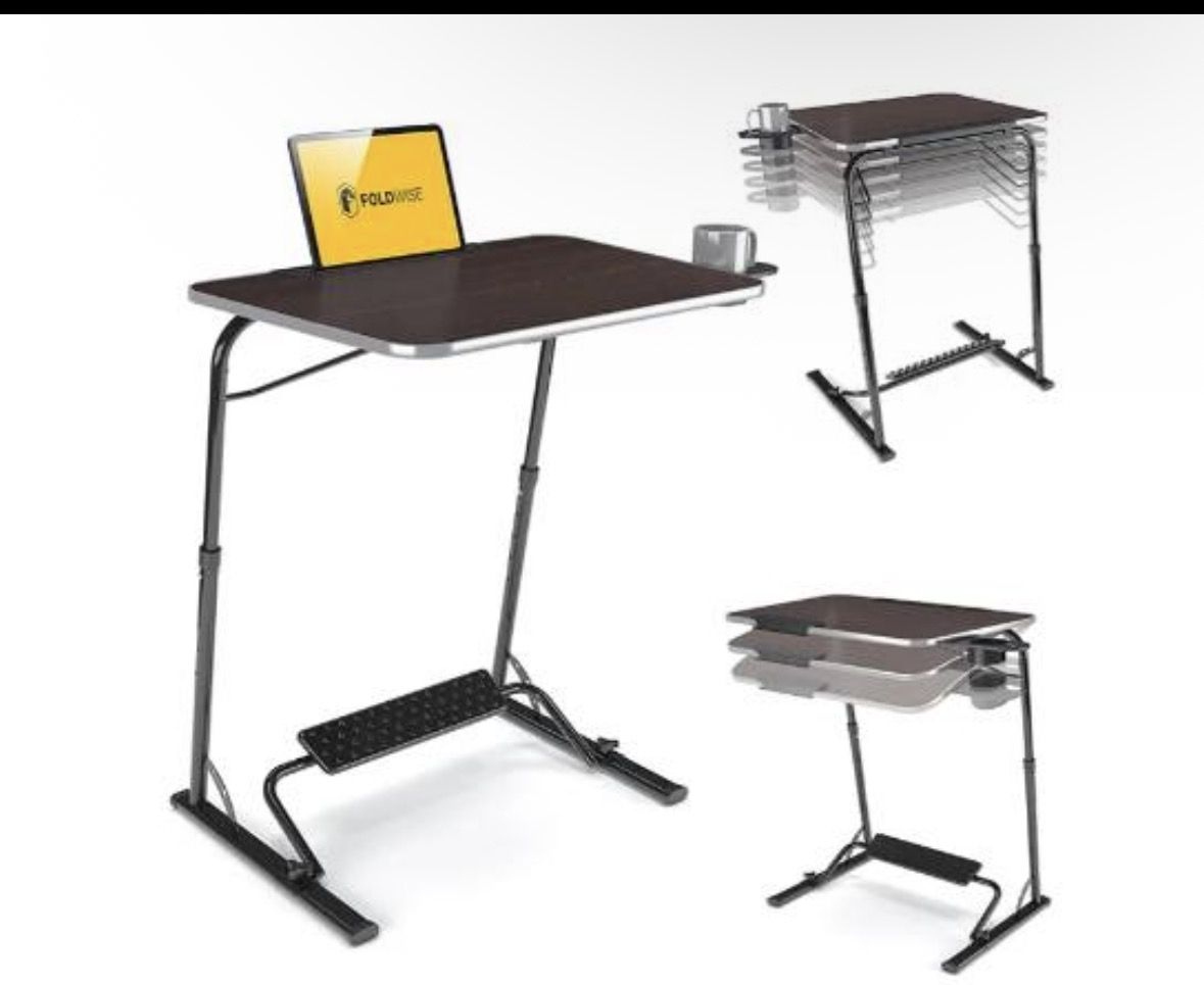 Brand new Adjustable Folding Laptop Table / TV Tray Table. Perfect for: working on laptop from couch or bed watching TV while eating studying or reading small space desk Features: Adjustable height and angle Foldable design - easy storage Cup holder Tablet / iPad holder Footrest bar Edge stopper to prevent laptop sliding Sturdy metal frame Color: Brown Pickup at North Phoenix (Near 52nd St and Bell Rd) laptop table, couch desk, bed desk, folding laptop desk, adjustable laptop stand, portable desk, sofa desk, laptop tray table, small desk, home office desk