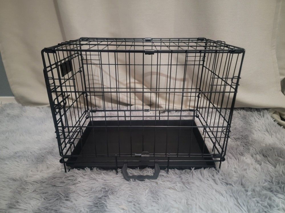 Located in North Fontana near 210 frwy Brand New 18"x12"x14" dog crate cat cage 2 door folding dog cage kennel with easy slide out tray and quick & easy pop up assembly NO TOOLS NEEDED. $25 small pet carrier I offer new pet packages. $75 includes 18" crate, 2 dog chew toys, 2 nonslide stainless steel bowls, option of 1 crate blanket or 1 small bed. 1 reflective dog harness available in Sm - Xl. Different colors. 1 dog leash with poo bags. All Brand new pet supply on my page. Larger crate sizes available as well as dog houses, pet playpens, dog whelping boxes and more, great for dog breeders , pet rescue and adoption, dog crate training .