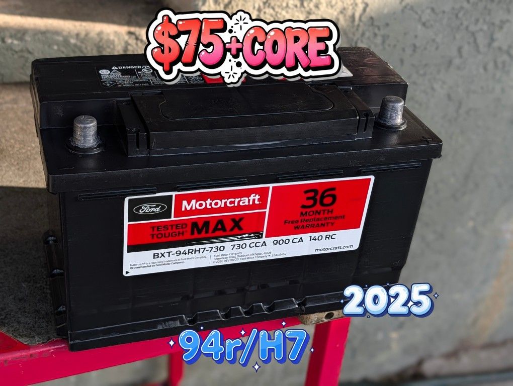 Car Battery Group Size 94r/H7 2025 In excellent condition. Fully Tested. $75 with core exchange (old battery) or $85 without. You're welcome to bring your own tester, but I'll also provide one. Payment accepted via Cash or Zelle Located in Boyle Heights.