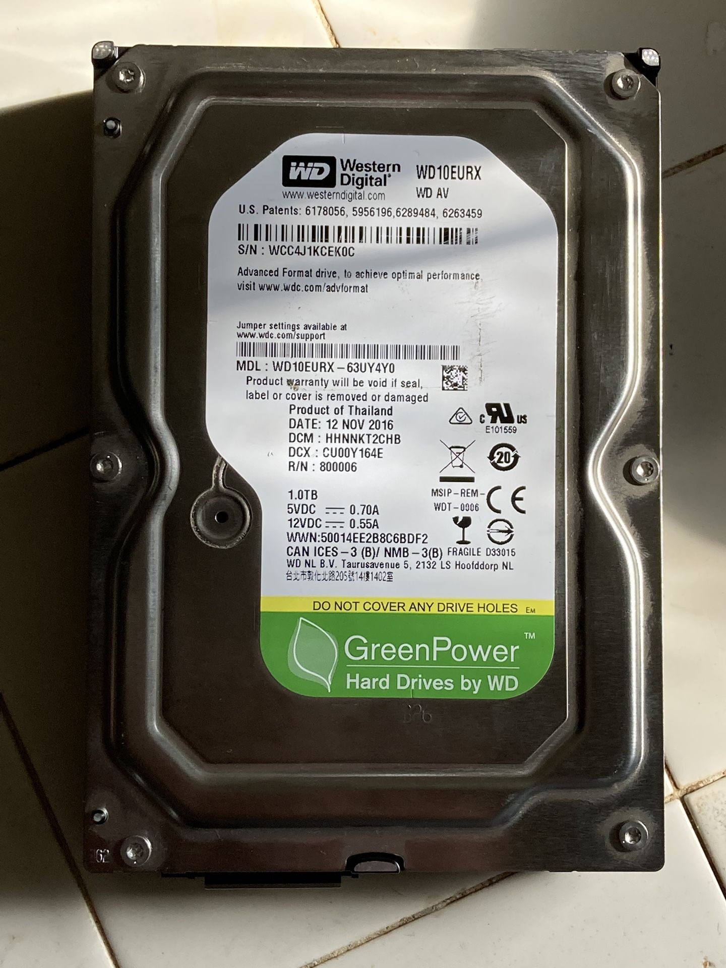 Western Digital AV-GP 1TB internal hard drive (model WD10EURX)