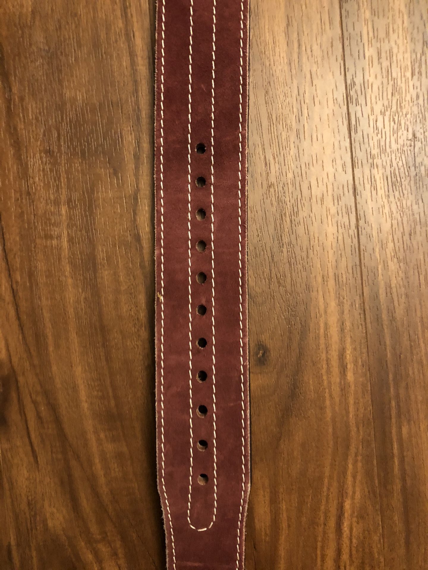 Middle of belt is 32 inches, weight lifting belt by “Custom Belts”, worn one time. Originally $110z asking $60