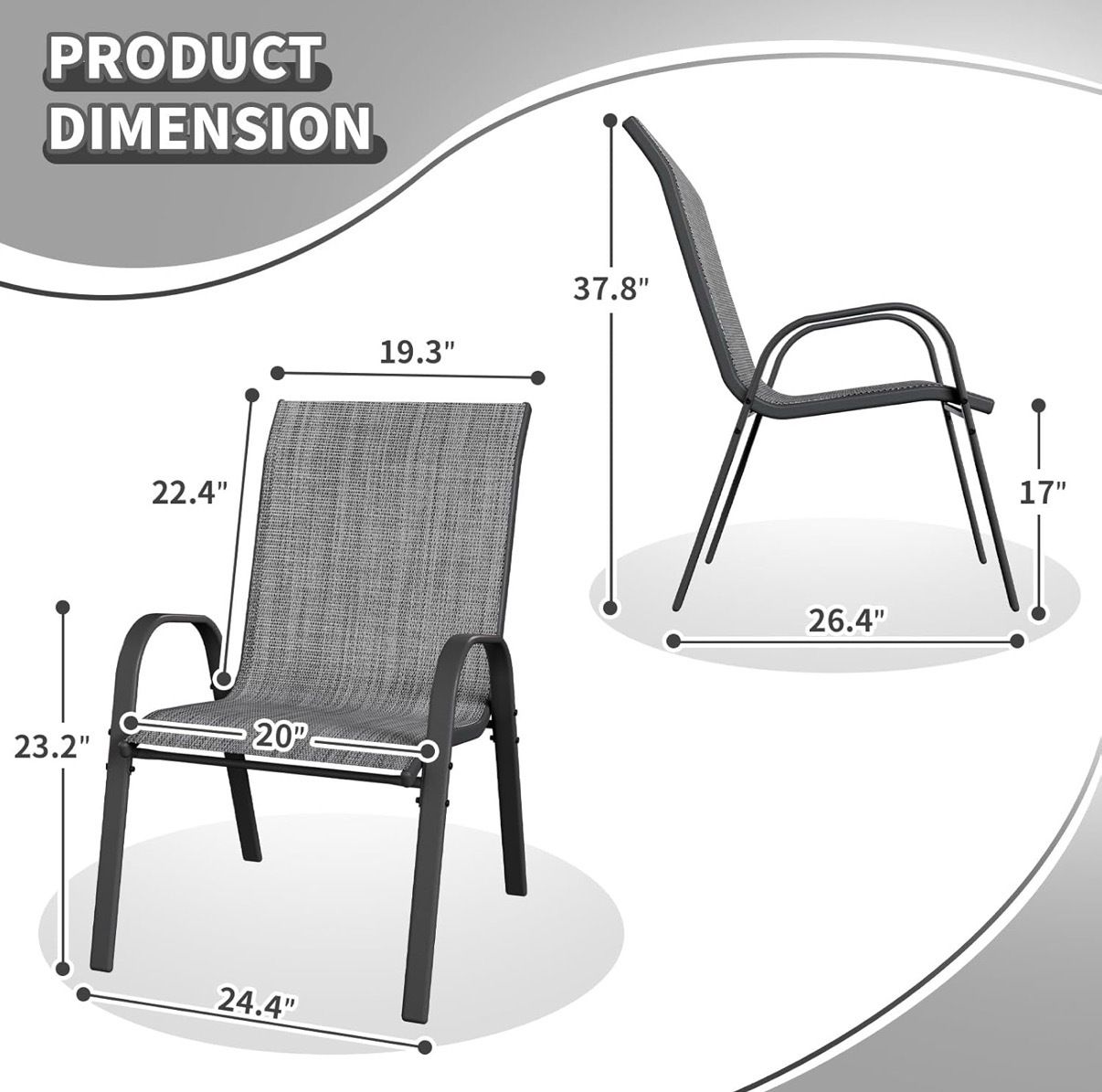 Patio Dining Chairs Set of 3, Outdoor Stackable Dining Chairs High Back, Patio Furniture for Backyard, Porch, Garden, Poolside (Grey) $75 for 3 chairs