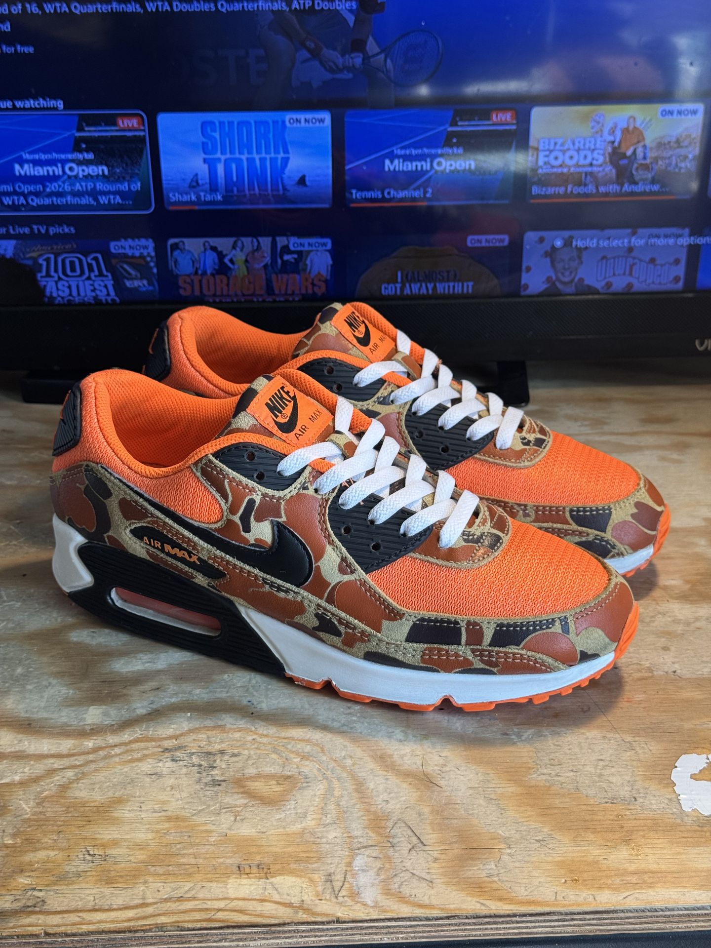 Nike Airmax 90 ‘Orange Camo’ Size: 9.5us Men’s Color: Orange/White Style Code: CW4039-800 100% Authentic. Pre-owned good condition (no box). Don't be shy—make an offer. Actual photos shown. Item was refurbished & inspected by POS-Unlimited Quality Control Professionals.