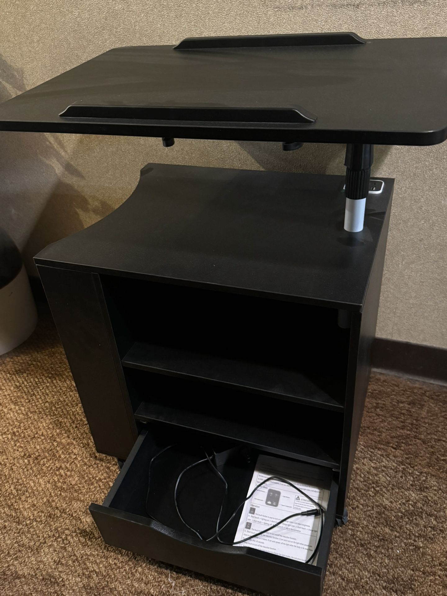 Got this small office table / nightstand for sale. It’s got an adjustable top you can tilt, built-in USB and Type-C ports, plus some shelves and a drawer for extra storage. Great for a bedroom, home office, or even gaming setups. Originally $119