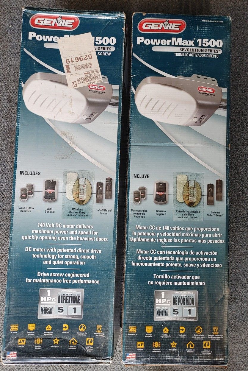2 GENIE PowerMax 1500 Garage Door Openers NEW