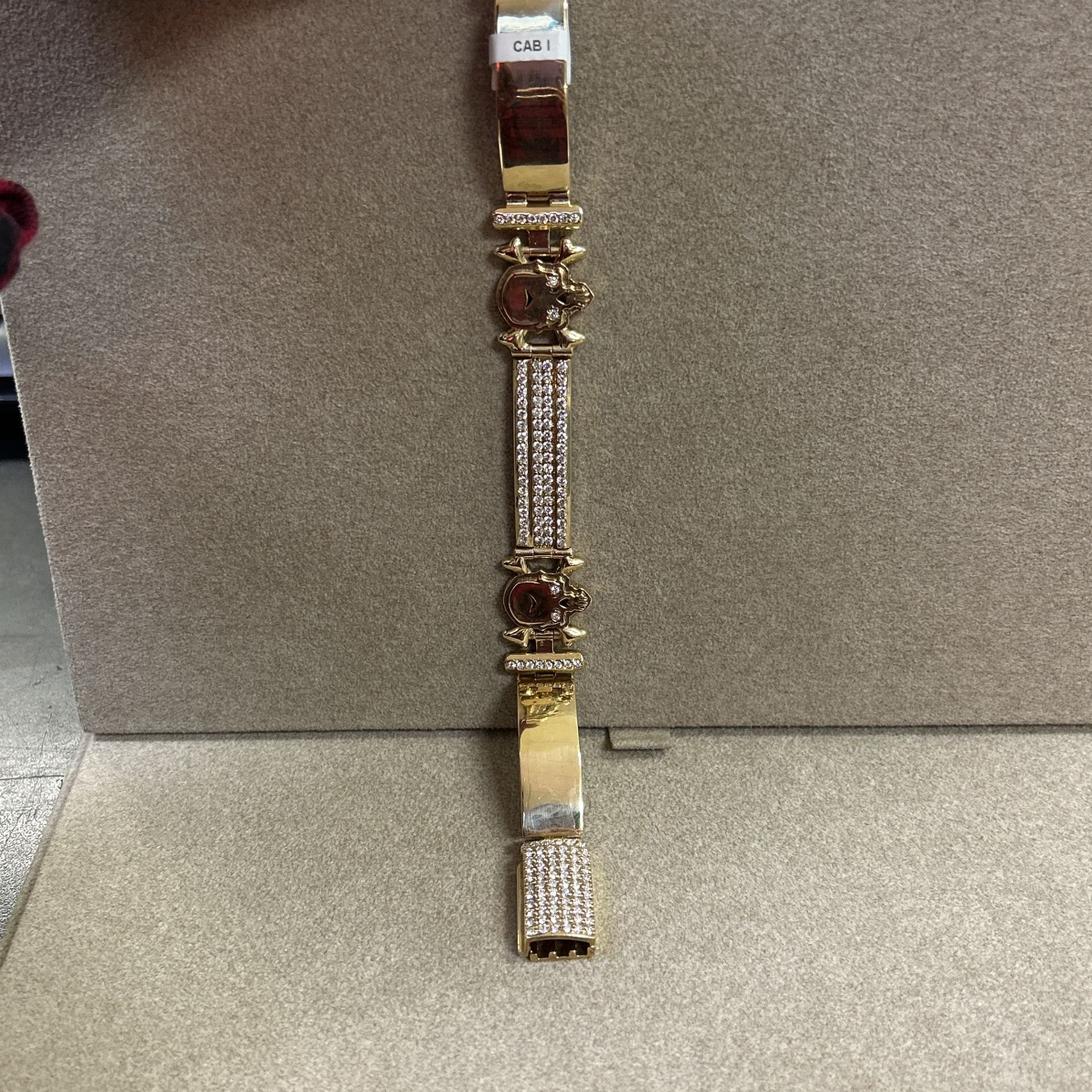 10k Yellow gold Has skulls and diamonds Clasp has around 2ct / 1.5 ct Grams : 60.1