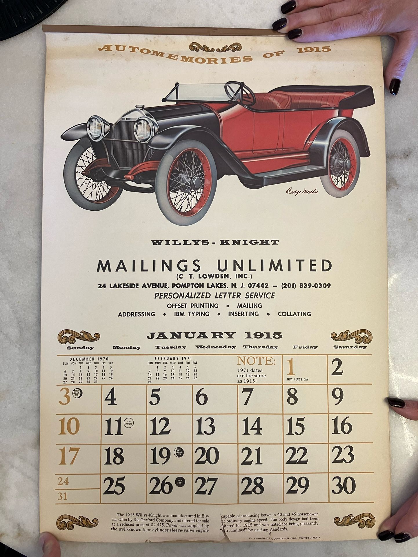 Vintage Automemories Of 1915 Calendar