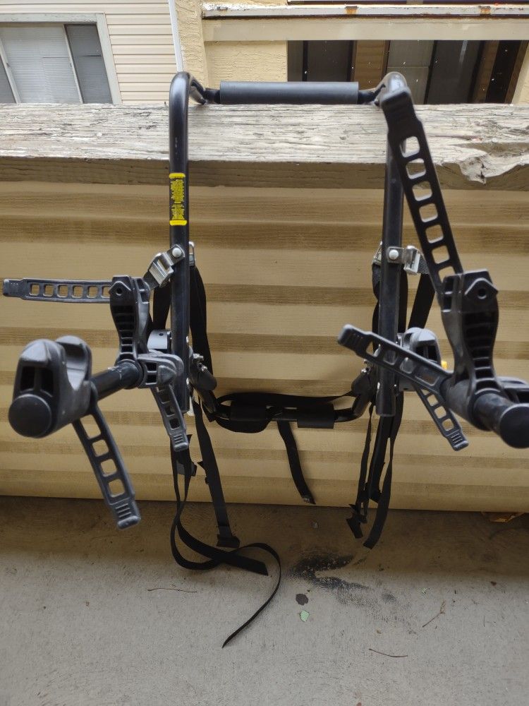 With the Guardian bike rack, what you see is what you get. And what you see is a complete trunk rack, simplified to its purest form. Made with steel sourced from America's heartland, the Guardian is tough enough to stand-up to the elements, yet gentle on bikes. Easy-to-use bike hold downs with ratcheting straps grip the bike's frame, while rack straps equipped with spring-loaded buckles ensure a snug rack-to-vehicle fit. This simple trunk rack fits most sedans, hatchbacks and vans, and comes completely assembled. Just take it out of the box, put it onto the car, and you'll be rolling in no time. Features - Carries 2 bikes (35 lb./bike) - A Bike Beam may be required for frames without a horizontal top tube. - Trunk bike rack. - No assembly needed. - Bike hold downs with ratcheting straps separate and firmly hold up to 3 bikes. - Bike rack straps with spring-loaded buckles ensure secure rack-to-vehicle fit. - Rack arms adjust to fit most sedans, hatchbacks and vans. - American-made steel frame construction. - Folds for compact, convenient storage. - Coated hooks protect vehicle's finish. - Heavy-duty foam pads protect vehicle's finish. Compare to $140.00 when new. Please see photos for details. Pick up is in the Easton area. Delivery is available in the Columbus area for a fee and prepayment. Cash is the preferred method of payment