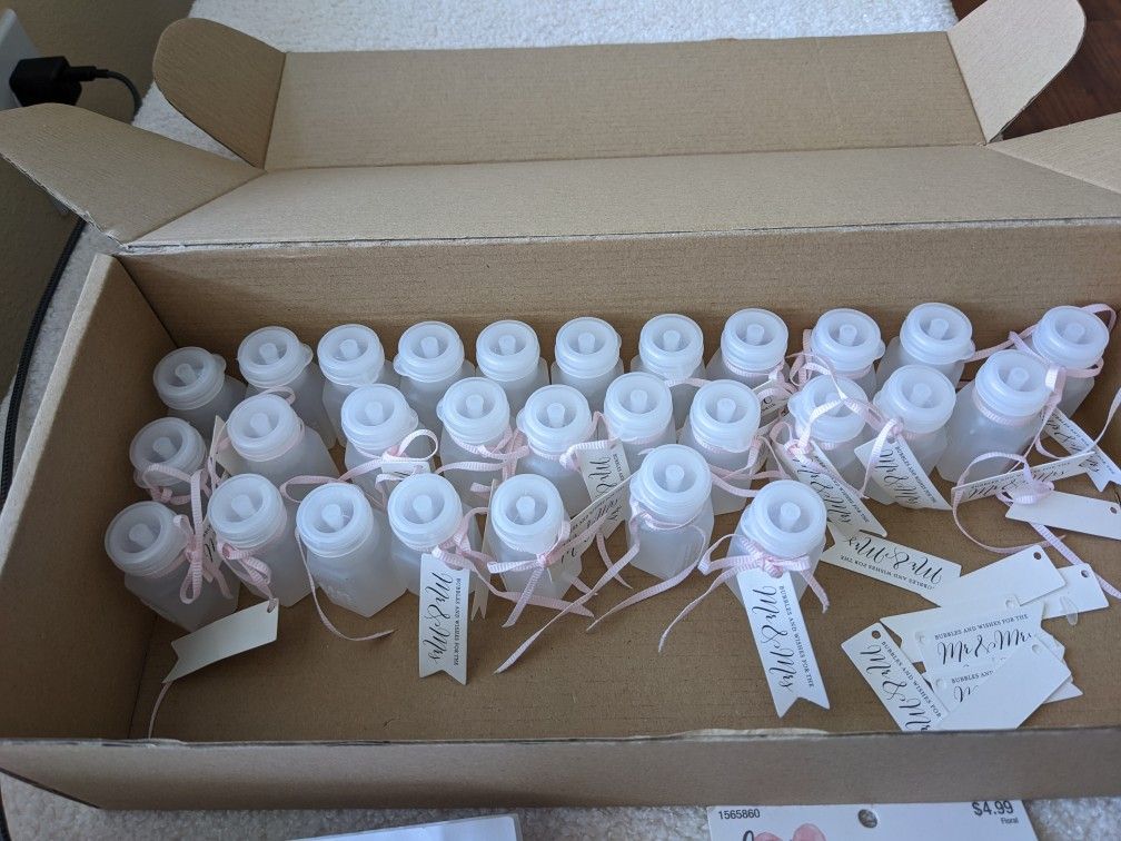 Unused Bubbles 25 tags / 29 bubbles Some have pink ribbon bows still intact.