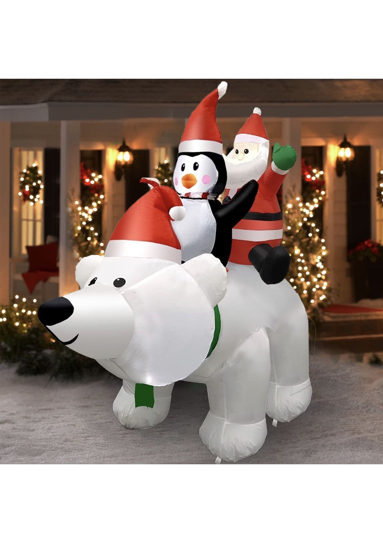 Christmas Inflatables Outdoor Decorations, 6.6FT Long Inflatable Polar Bear with Santa and Penguin Christmas Blow Up Yard Decorations with Built-in LE
