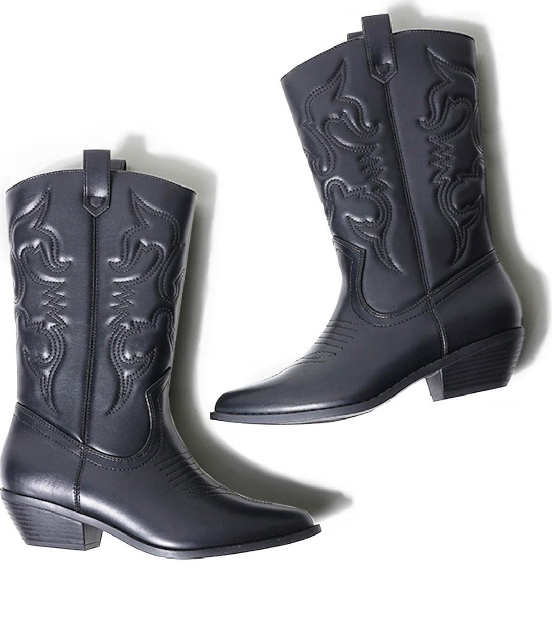 J. Adams Lasso Cowgirl Boots for Women - Mid Calf Low Heel Western Boot Modern take on the classic heeled cowgirl boots, blending timeless Western influence with contemporary women's fashion- 9.5