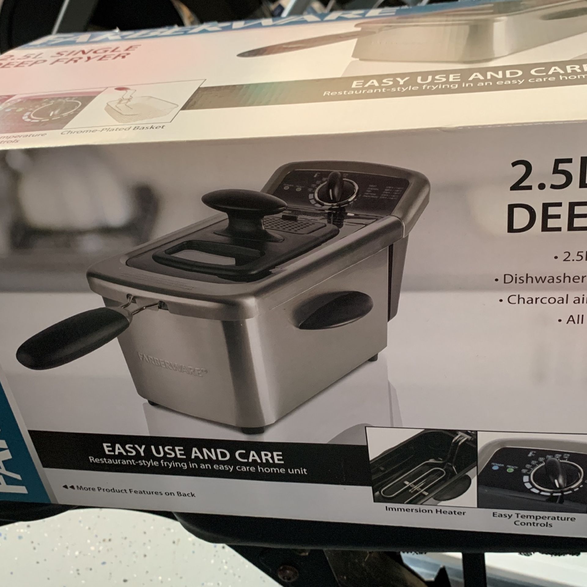 Make your own delicious fried foods at home with the FARBERWARE 2.5L Single Stainless Steel Deep Fryer. You can make perfect fried food every time thanks to this home deep fryer's easy temperature control and viewing window. The deep fryer features an enamel-coated oil pan and an immersion heating element, as well as a charcoal air filter. The basket and oil pan is completely dishwasher safe for easy clean-up.