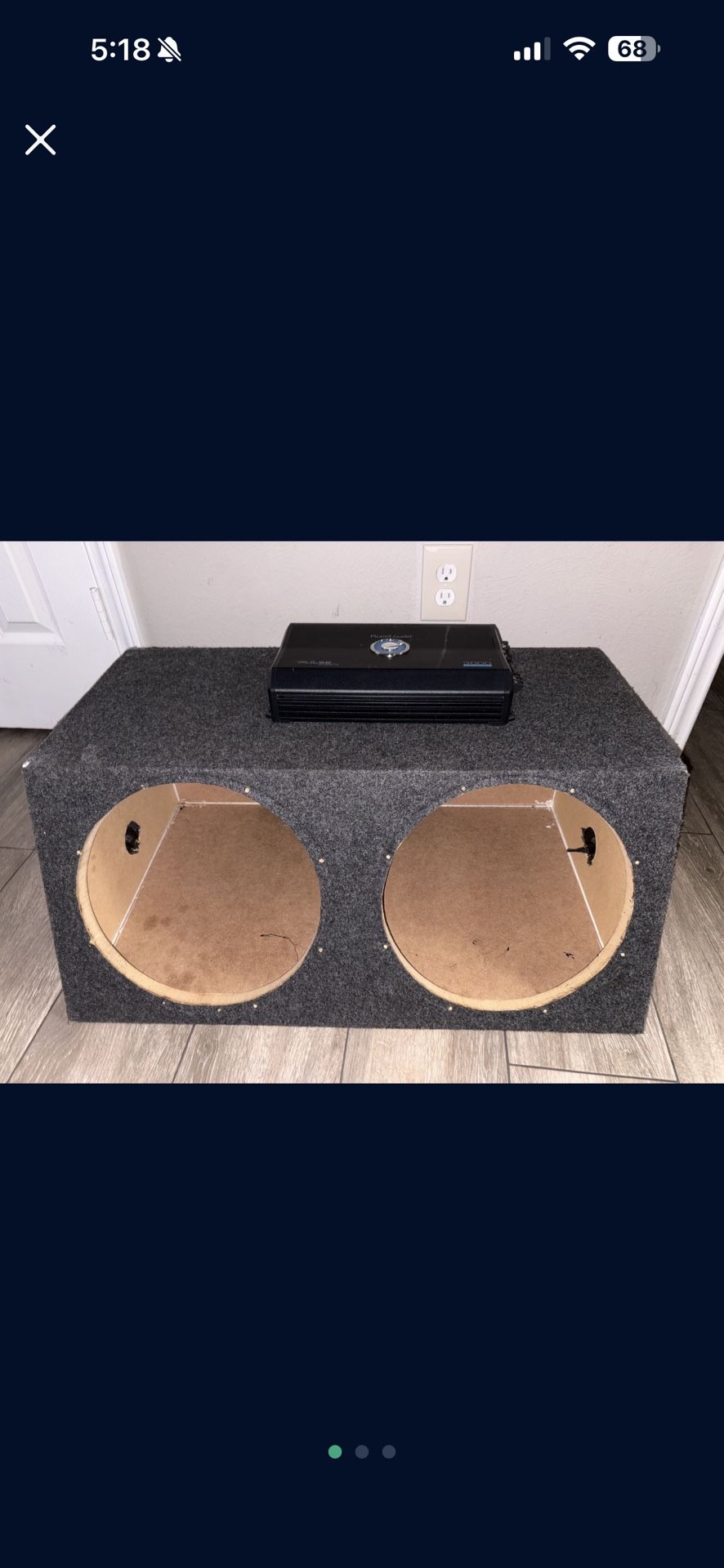 I have this 3000 watt Planet audio subwoofer amp with a dual 12” sub box im looking to take the cash or trade for an audio battery or a 15” ported subwoofer box