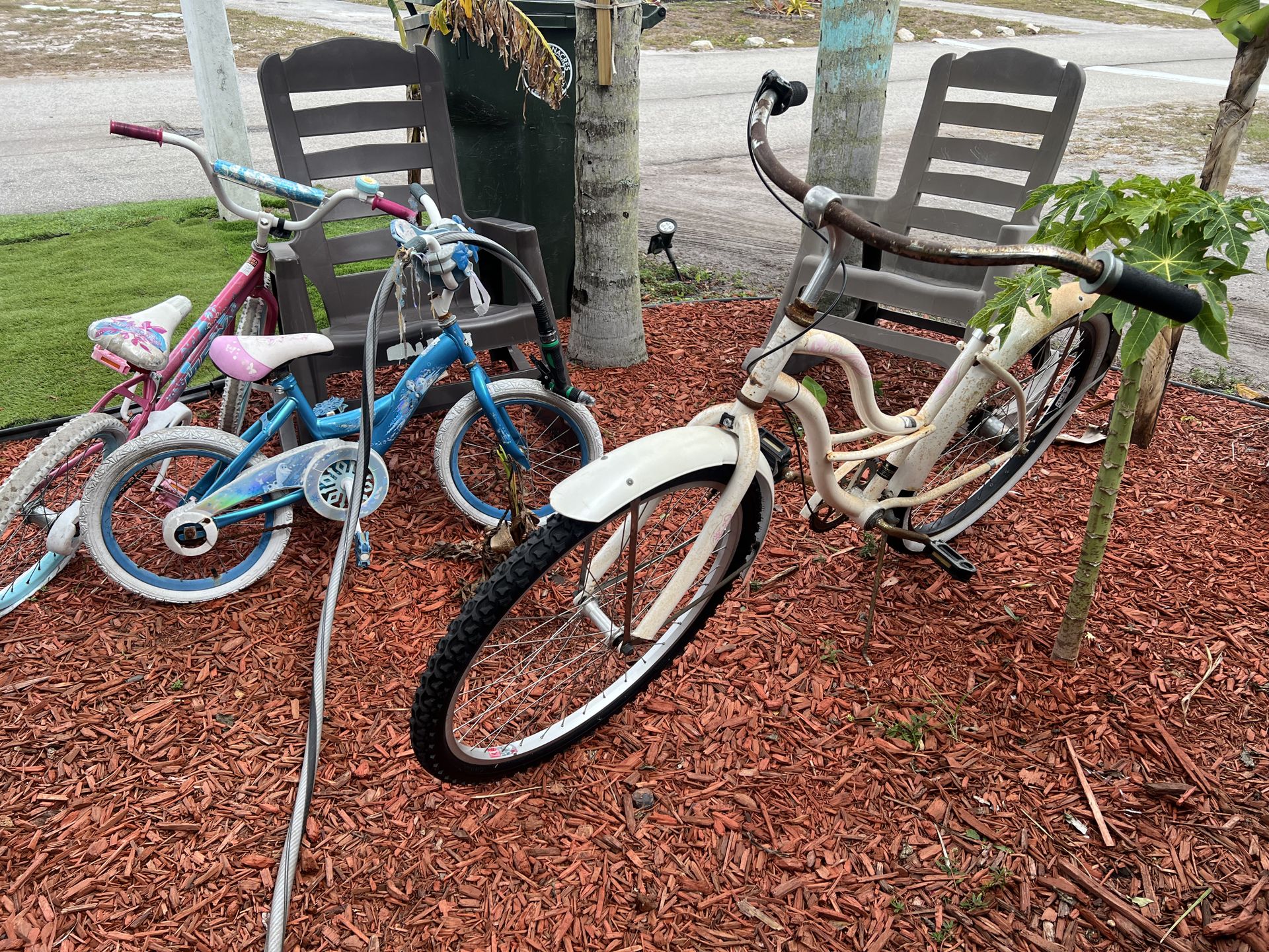 16”rusty chain 20”needs air in tire 26” missing seat All for $20