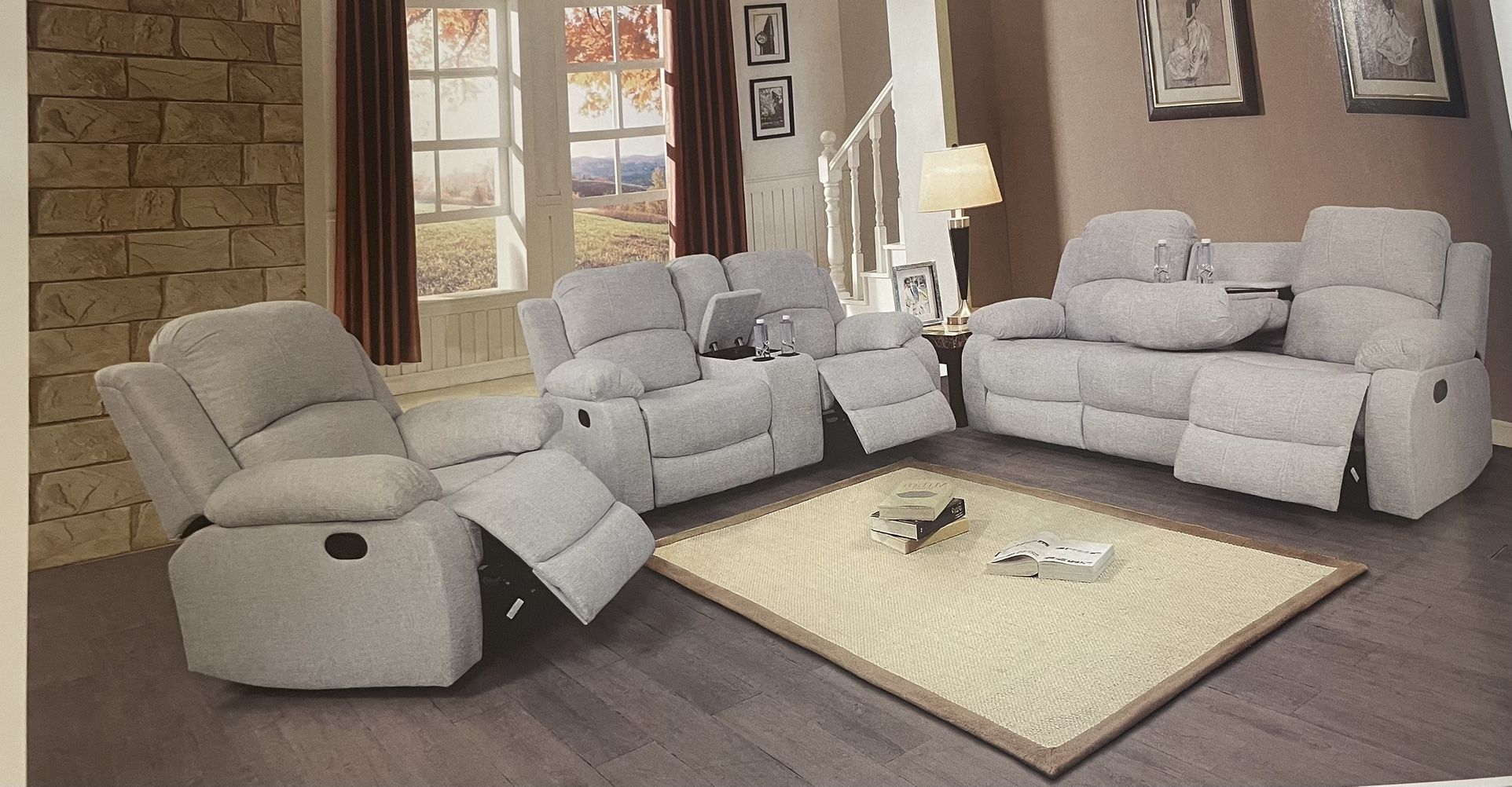 Grey Microfiber Fully Reclining Three Piece Couch Set