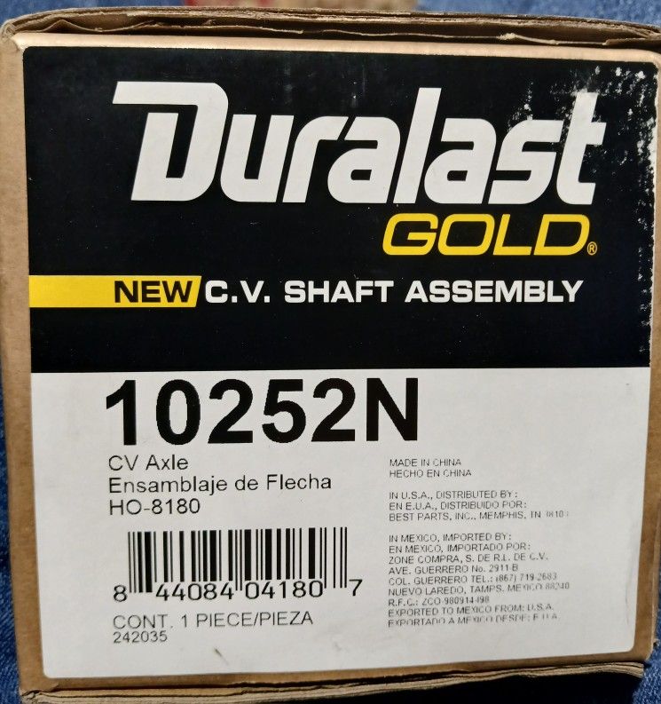 Bought this new from autozone however was not able to get the old one out of the transmission so I scrapped the car and now I have a new CV axle that is still new in the box. You can look it up on https://offerup.com/redirect/?o=YXV0b3pvbmUuY29t for details. My car was a 2007 Honda Accord EX, Automatic transmission, V6 motor. It's a Duralast Gold CV Axle Assembly part #10252N passenger side, new not remanufactured. $113.99 plus tax is what I paid.