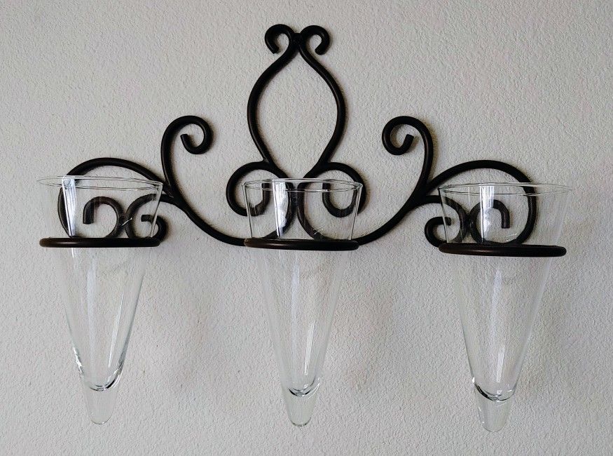 Wrought Iron And Glass Wall Mounted Candle Holders/Vases/Decor