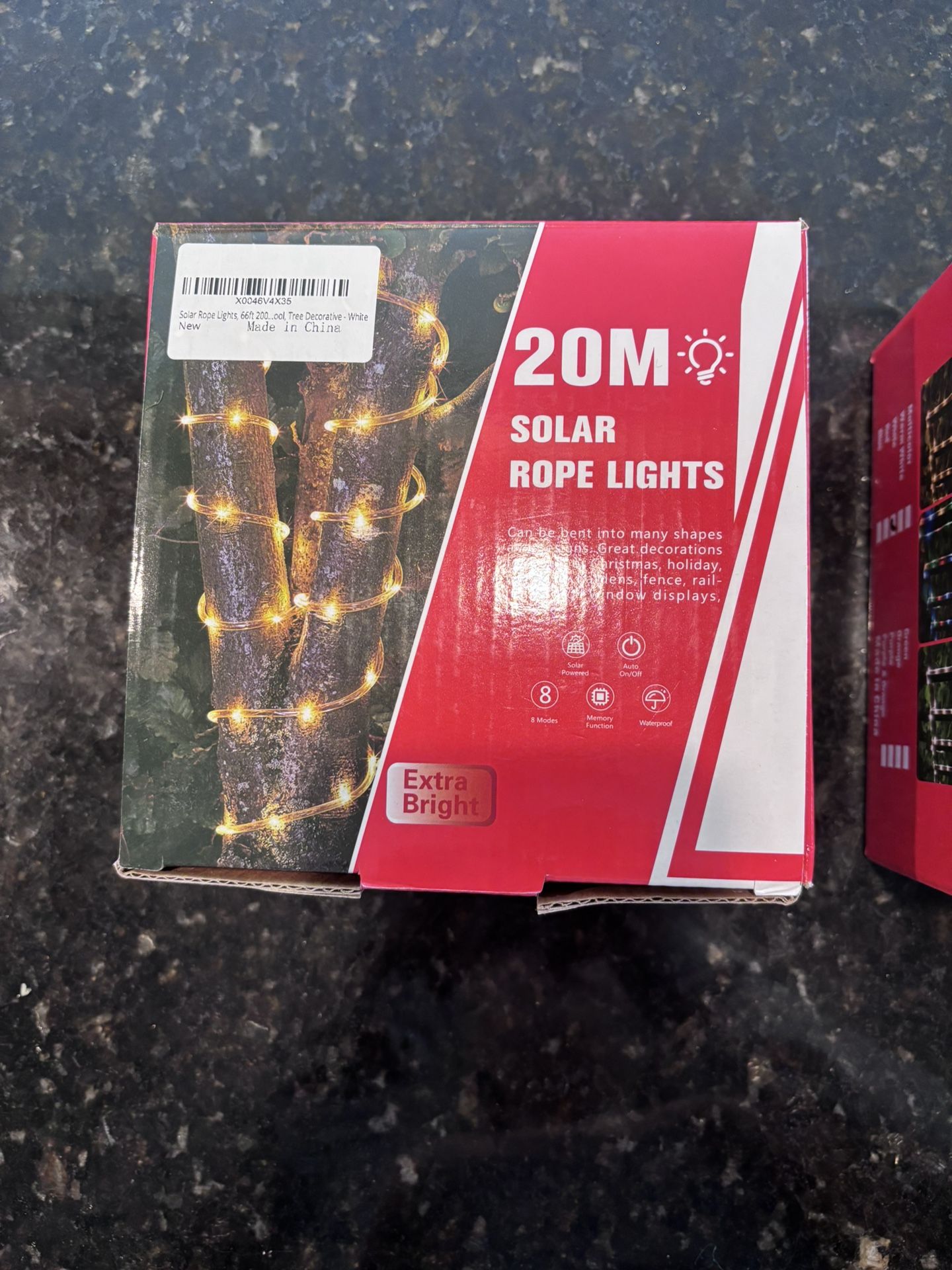 Brand new never used! 2 packs - $10/each Solar Rope Lights, 66ft 200LED Solar String Lights, 8 Modes Waterproof Solar Powered Outdoor Light, Flexible Clear Tube Light for Garden, Backyard, Patio, Deck, Porch, Pool, Tree Decorative - White