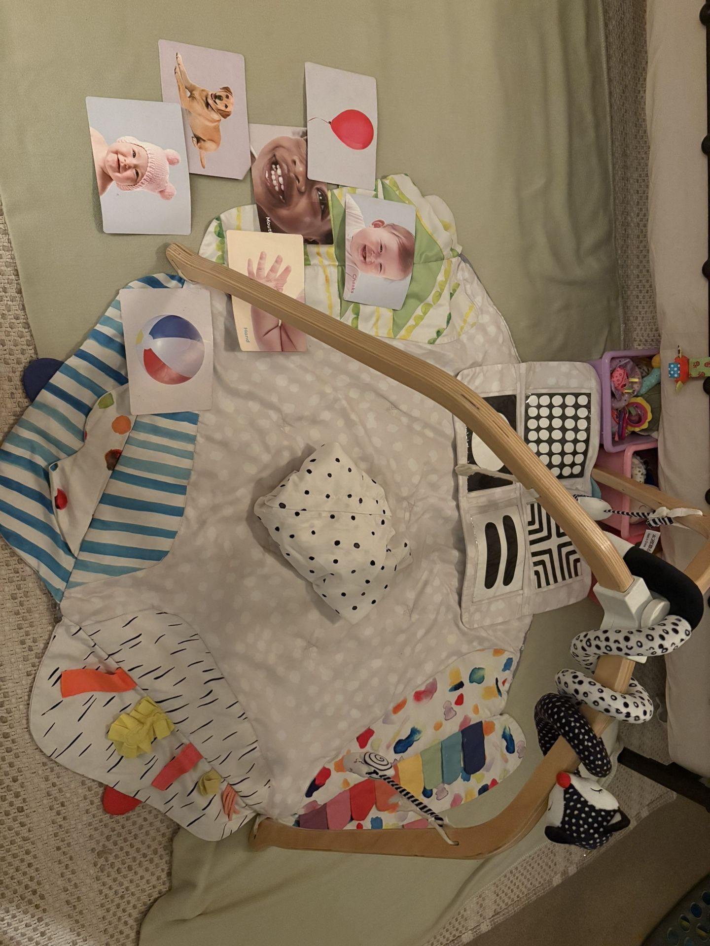 Good condition , extra toys included if you want them. Everything in pictures excluding what’s in the pink bins. Two squeakers in the mat, one doesn’t squeak but other then that, good condition! Full offers only. Little tent included, baby loved that!
