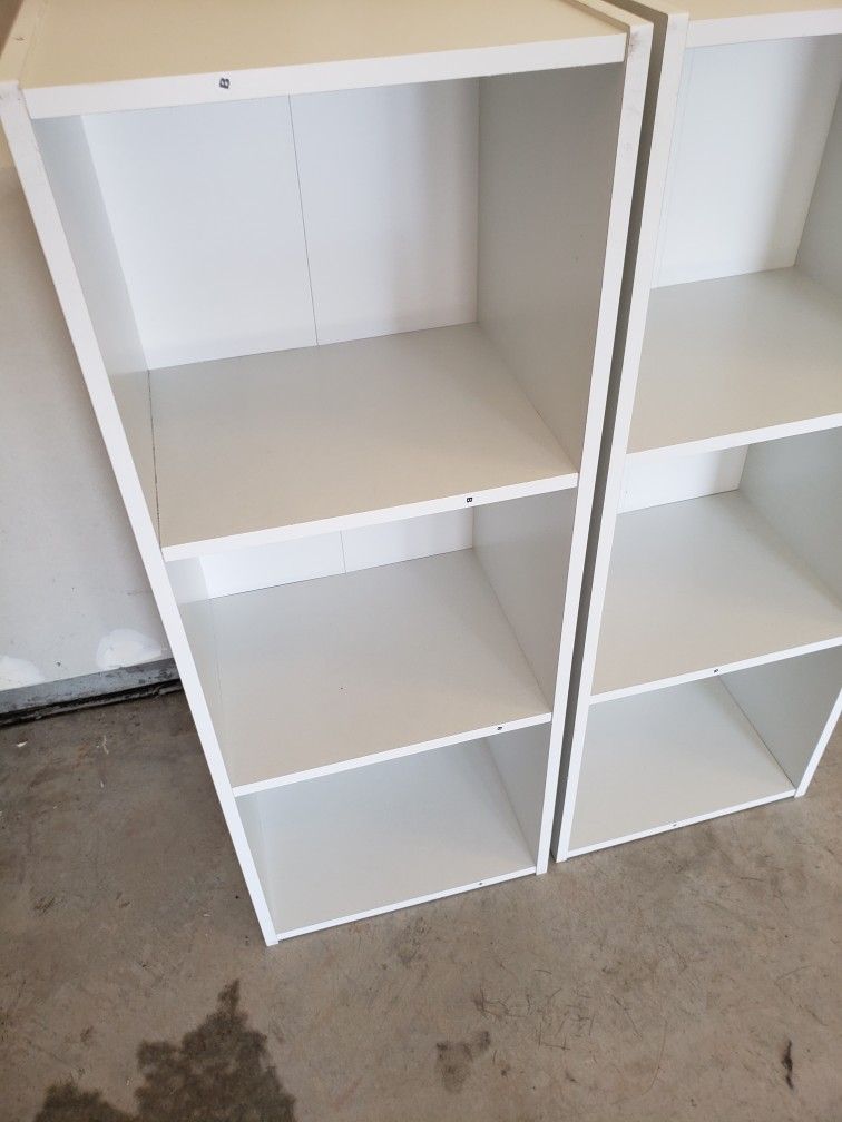 Storage shelves bookcase closet organizer. Dimensions / measurements: 12-in W x 9 1/2-in D x 31 1/2-in H. I have 3 available. Asking $10 each or all 3 for $25.