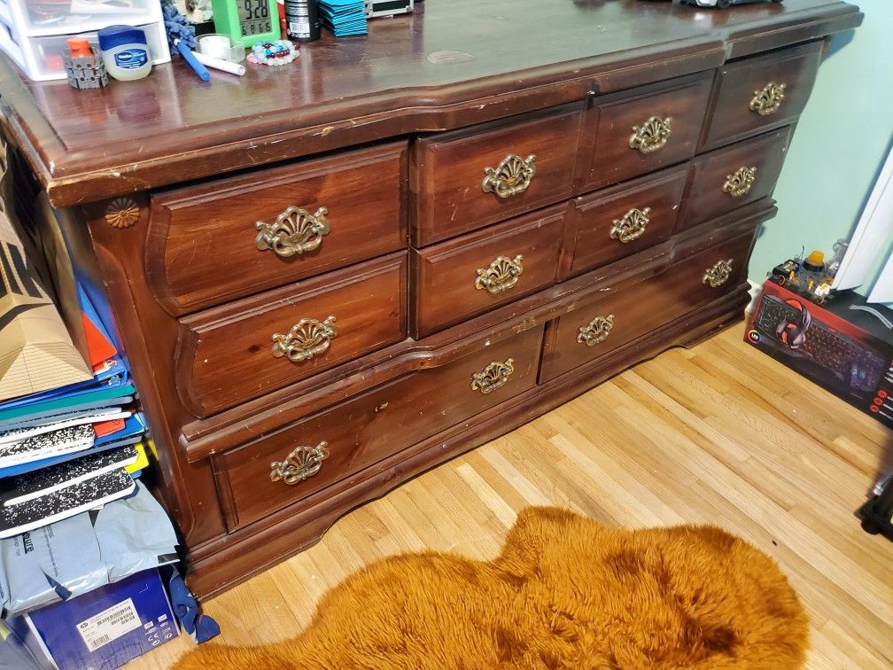 Solid wood dresser in good condition 62 wide 32 tall 18 depth Need gone ASAP. $40