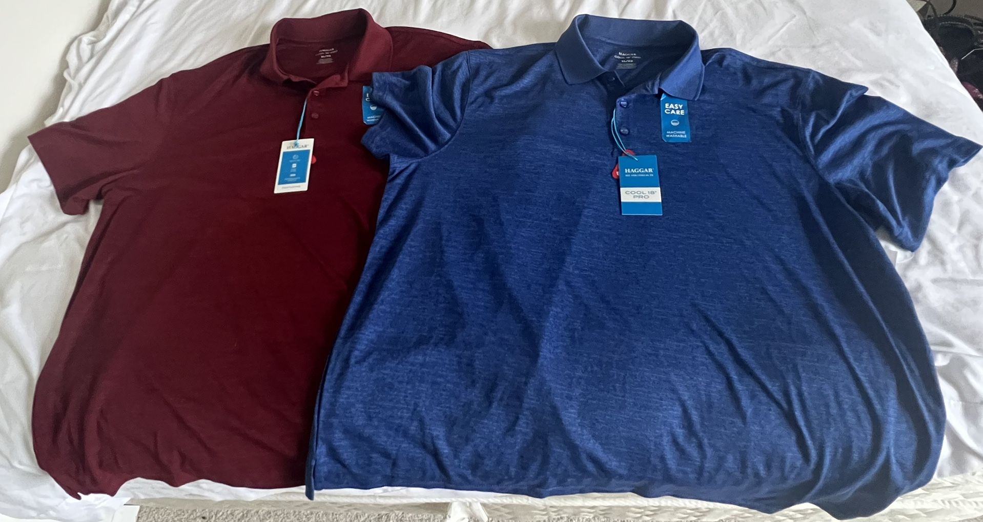 2 brand new, never worn short sleeved polo shirts. Tags still on. Quick dry and easy care. Size XL.