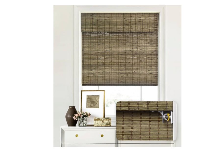 LazBlinds No Tools No Drill Cordless Bamboo Roman Shades, Privacy Window Treatment, Roll Up Bamboo Blinds for Windows 33'' W x 64'' H, Driftwood