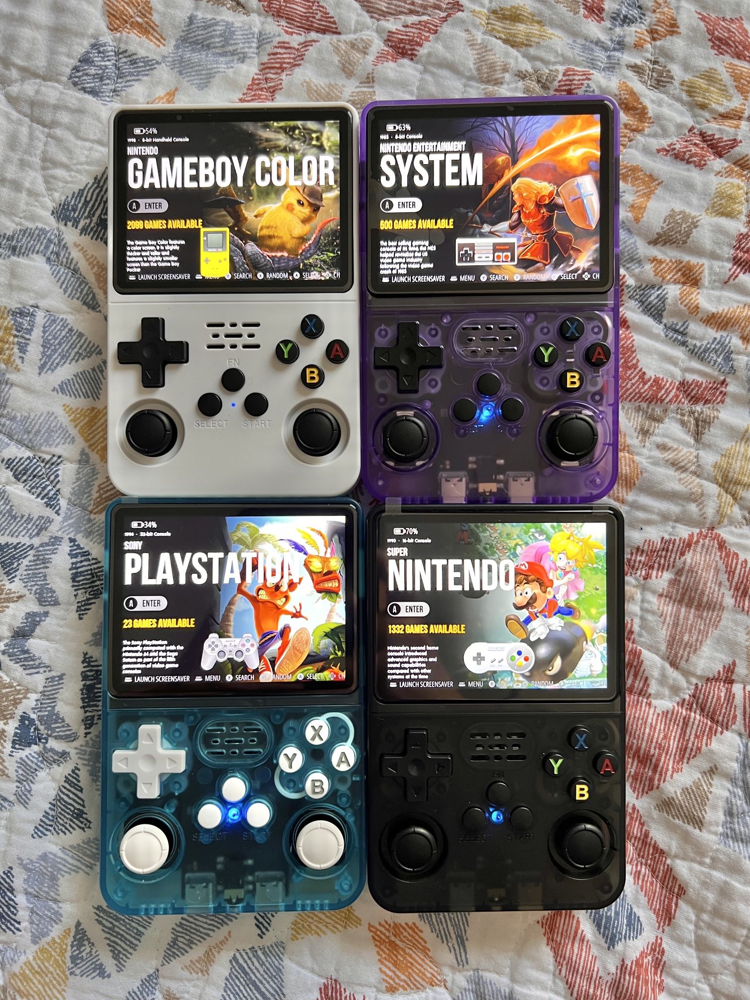 Each one costs $70 New Game Console 64GB Platforms: Nintendo, Gameboy, Playstation, PSP... +10.000 Games Games like: Mario Bros, Zelda, Pokemon, Street Fighter, Bomberman.... Memory 64Gb π3200 mAh - Includes screen protector and charger I can make shipment