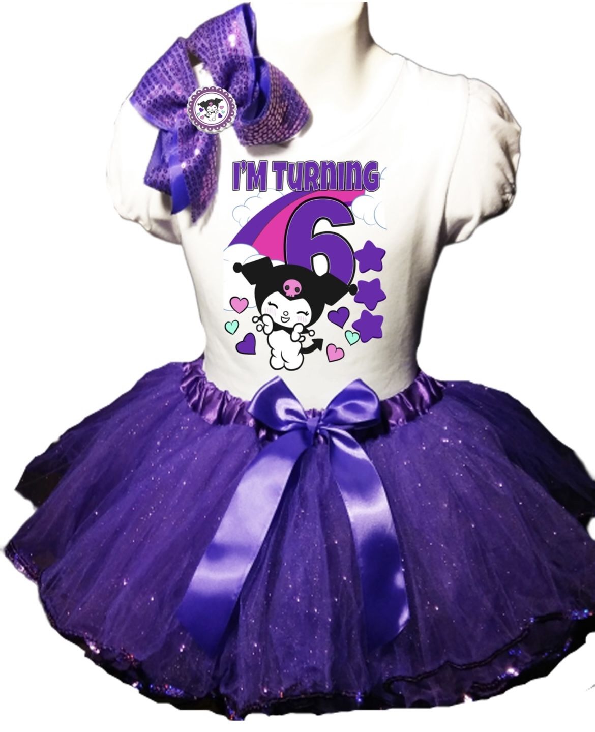 kuromi 6th birthday outfit tutu dress personalized with name and number on the blouse available in 1T-2T-3T-4T-5T-6T-7T