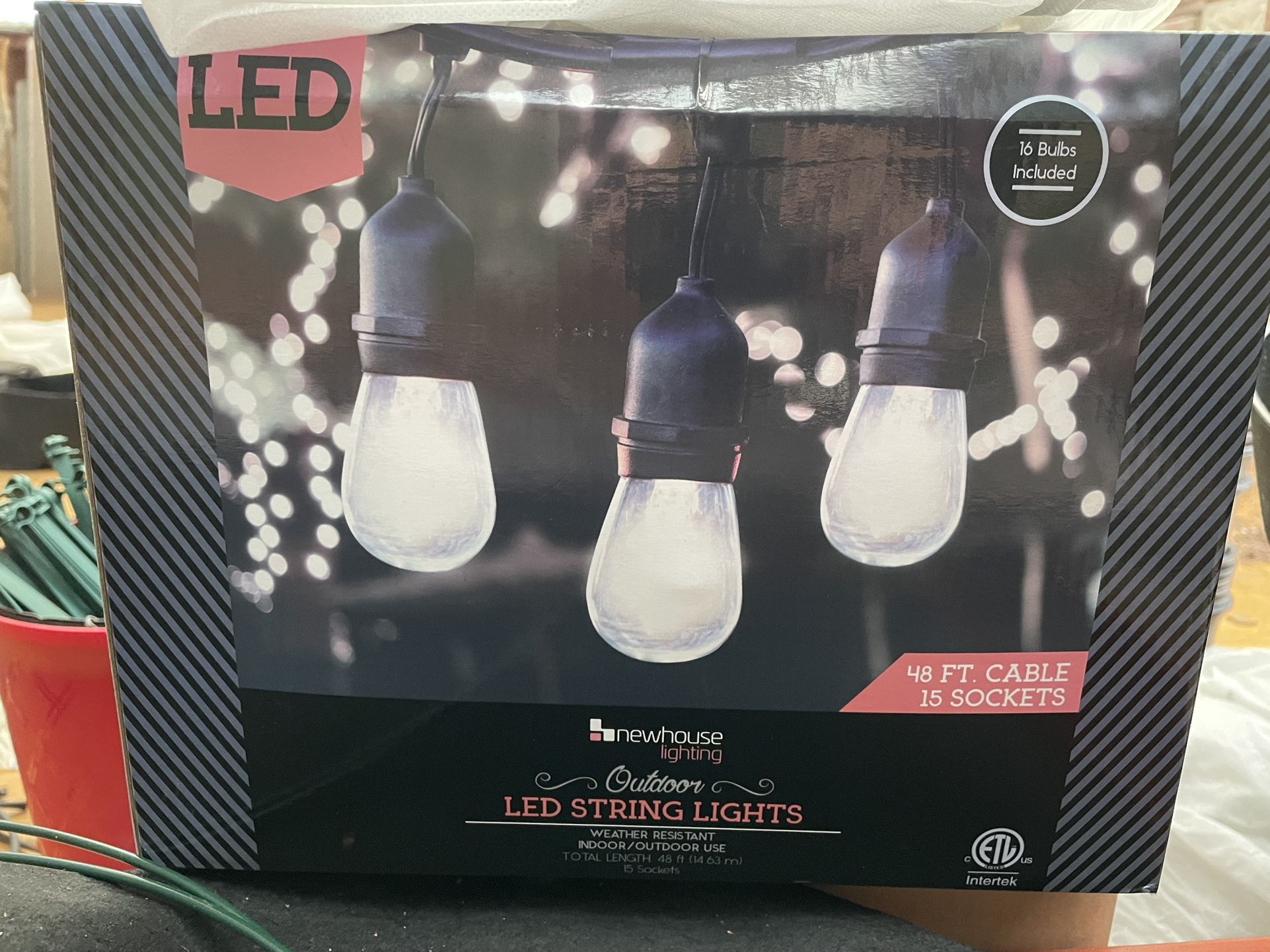 2 48ft LED String Lights and 8 Solar Tiki Torches - New