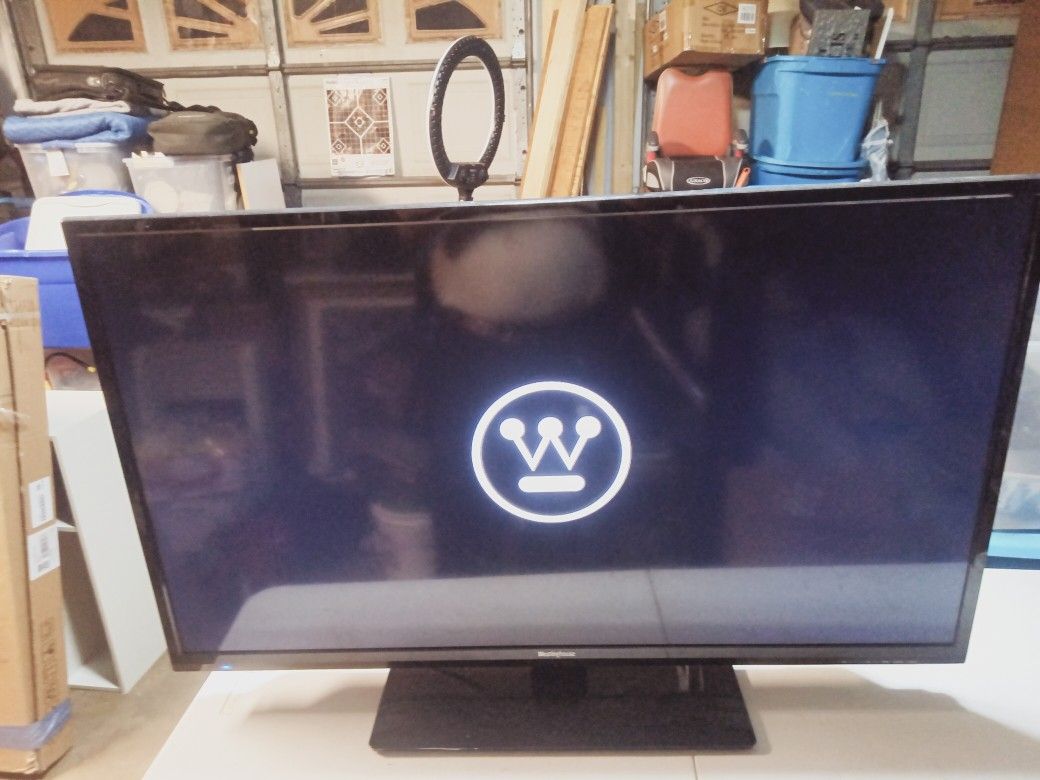 It's 40" T.V. No scratches Comes with a stand Comes for the universal remote I could have it turned on when you come to pick it up and have it dried out.