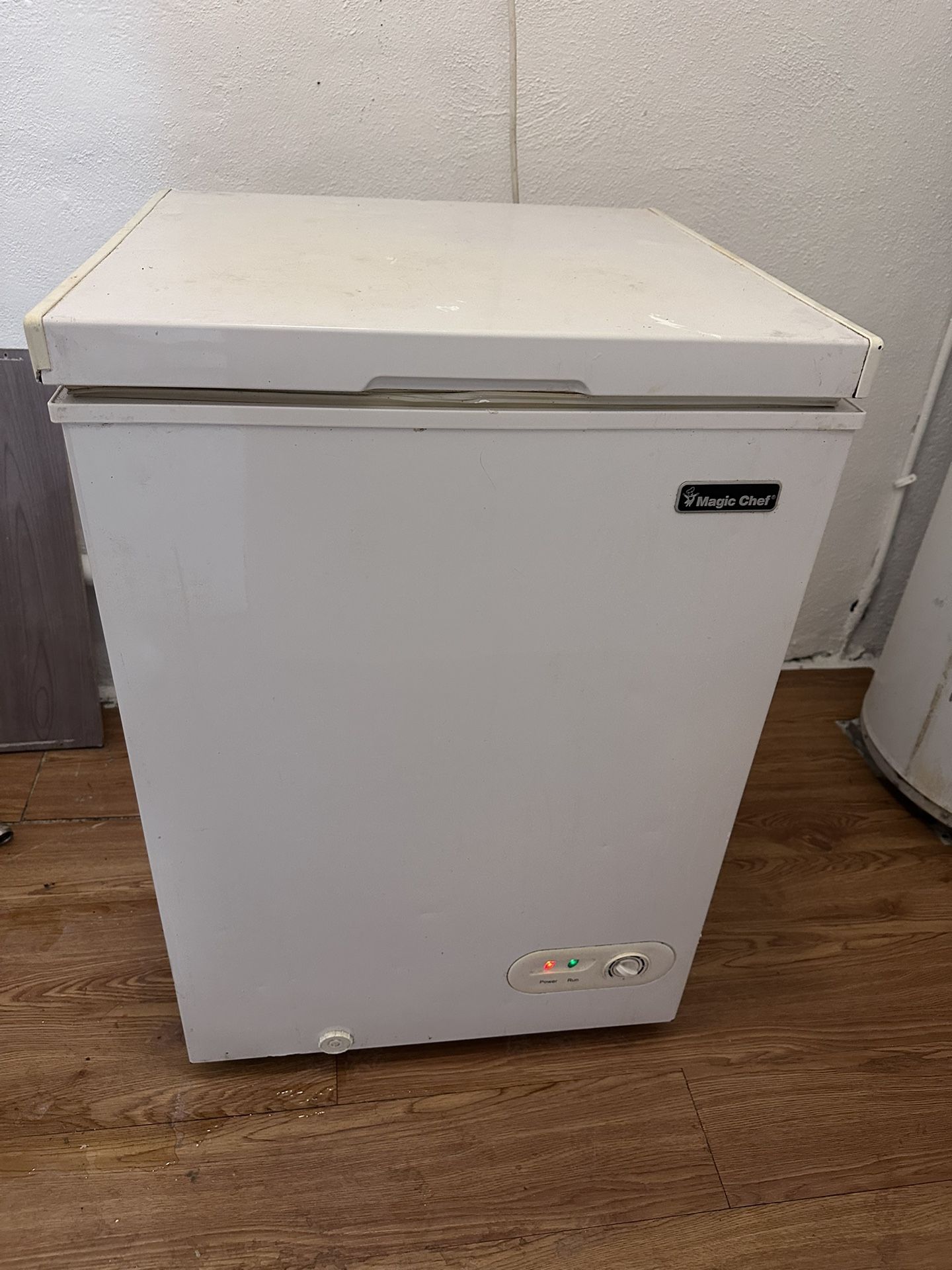 Used (manufactured 2017), working free-standing freezer unit. Brand: Magic Chef, model: hmcf35w2 32 1/2” x 22 1/4” x 22 1/2” Your transportation, pick up at Biscayne Park.