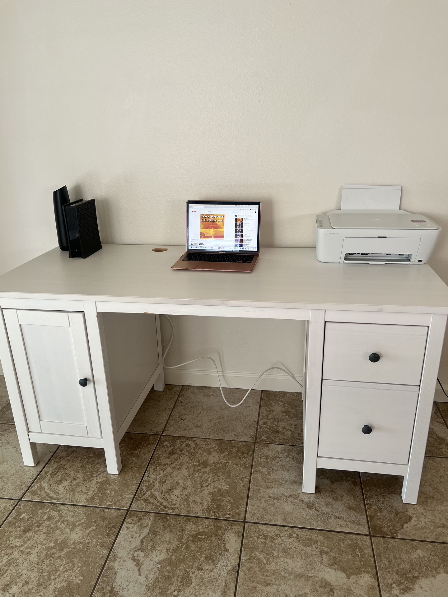 Getting rid of my ikea hemned desk, works great, minor scratches but I’m sure you can fix with some paint. No longer needed! Accepting offers
