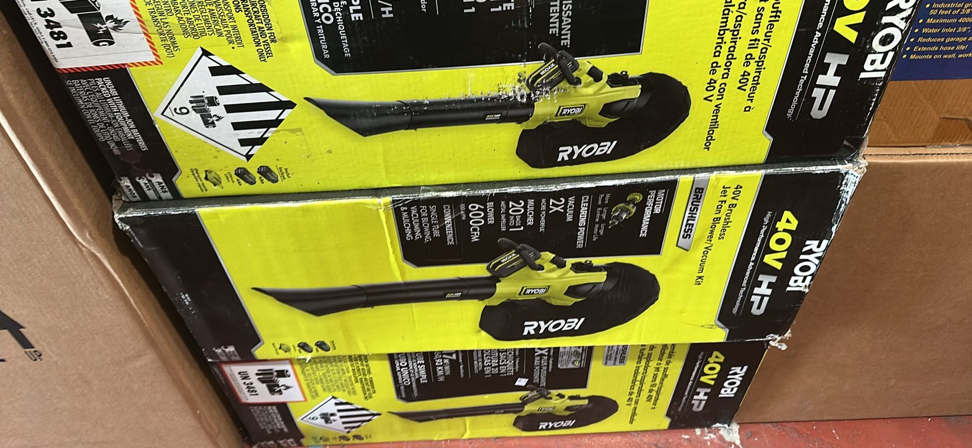 Ryobi 40v ho brushless blower vac kit $350 (financing available)