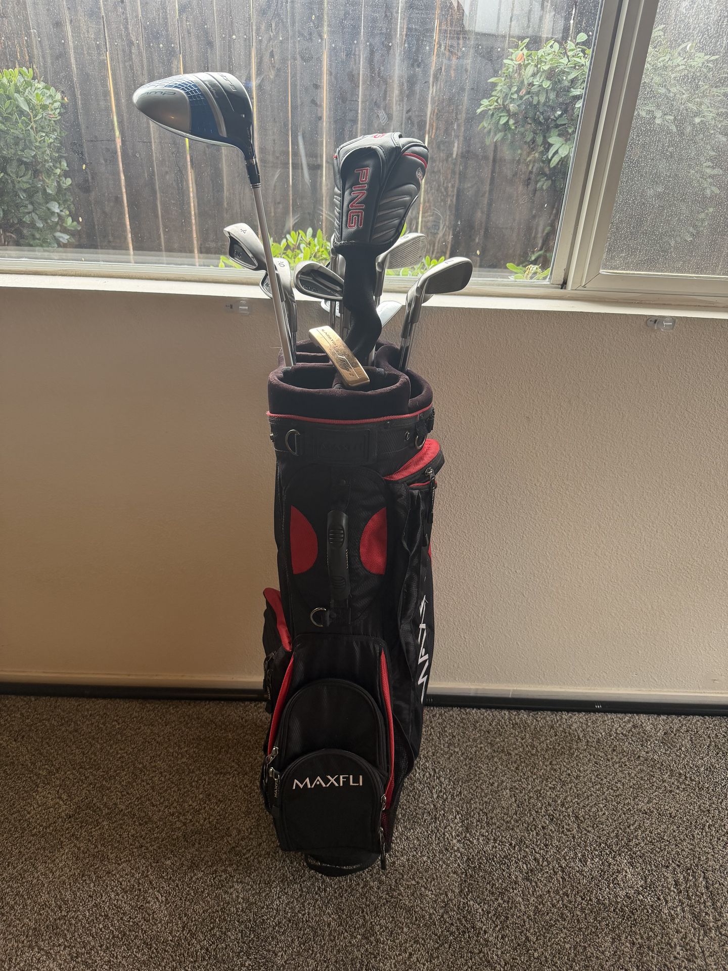 Selling a complete golf set that’s ready to hit the course. Everything is in good used condition with normal cosmetic wear but fully functional and well taken care of. Great setup for a beginner or intermediate player who wants quality clubs without paying new prices. Includes: • Cobra driver • Full Ping G25 iron set • Ping G25 hybrid • Ping Karsten TR Anser 2 putter • Maxfli stand golf bag Grips are solid, clubs are clean, and the bag is in good shape with working zippers and plenty of storage. Only selling because they’re not getting used.