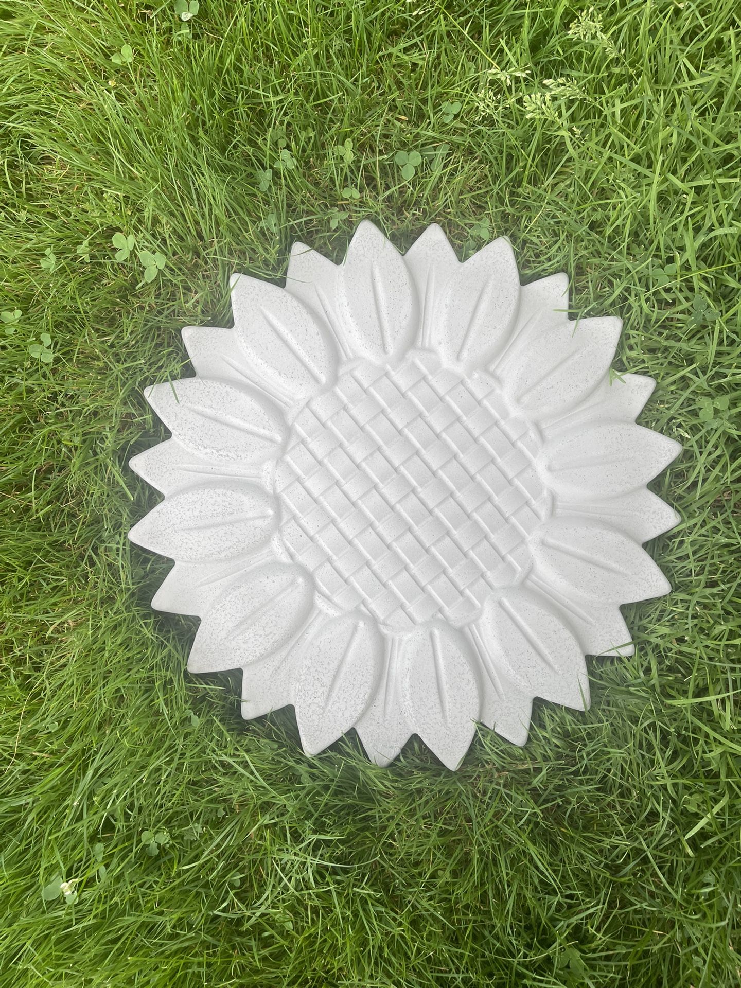 Large Concrete sunflower stepping stone measures 14” in diameter and 1.5” thickness