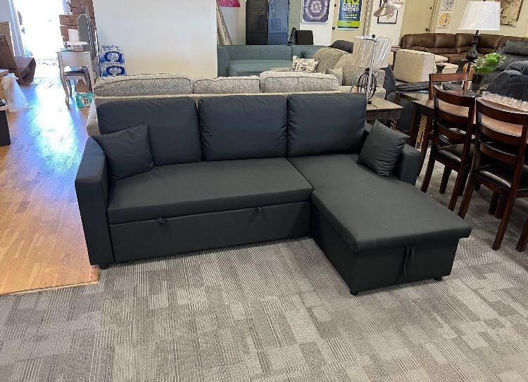 Black Sectional Sofa Pull-out Bed With Storage Chaise