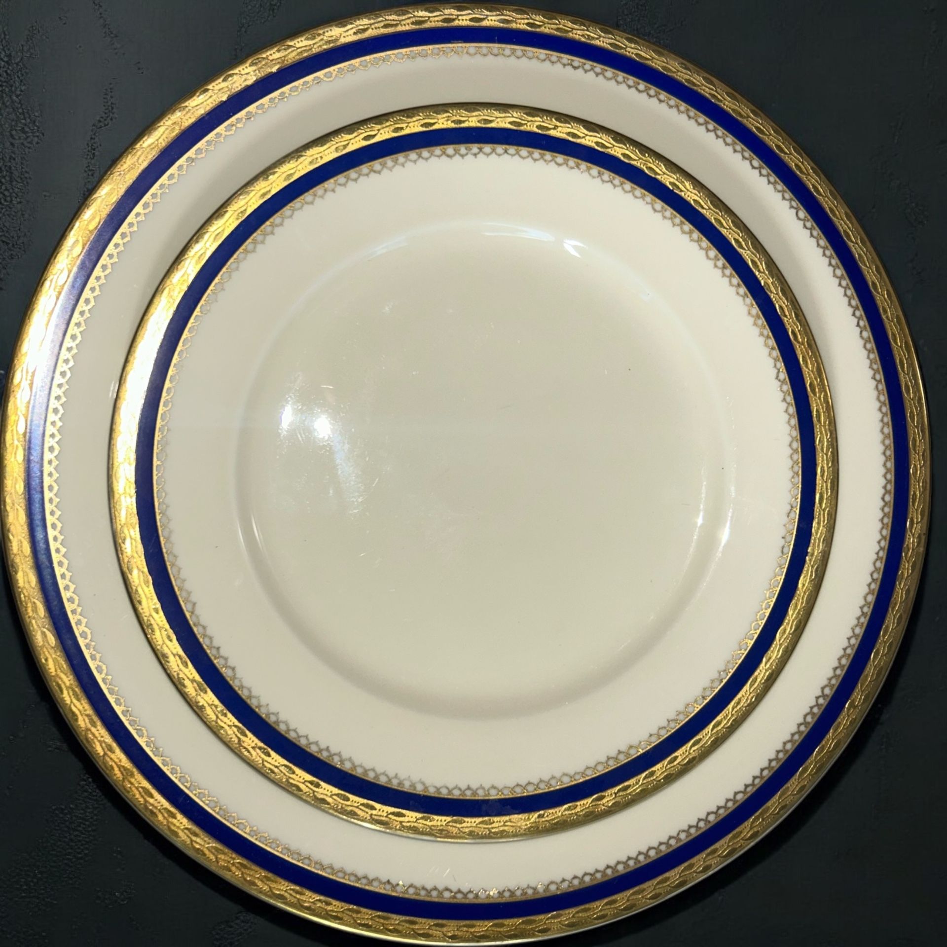 exquisite white and blue plate, elegantly adorned with a luxurious gold trim, serves as a stunning centerpiece for any dining occasion. Its intricate design combines classic aesthetics with modern sophistication, making it perfect for both formal gatherings and casual meals. Crafted with high-quality materials, this plate not only enhances the visual appeal of your table setting but also ensures durability for everyday use. Comes with 4 dinner plates and 4 Salad plates item located in stockton will meet to sell.