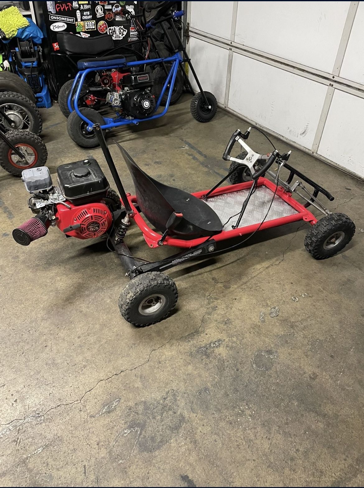 Looking to sell my single seat gokart. I’m excellent condition. Very fun go kart. Equipped with a 212cc engine. Fires right up And very quick about 40-50 mph Runs great. Has a working disc brake. And working kill switch. Very reliable kart. -6.5hp engine -rejetted carburetor with velocity stack -new throttle cable. Asking 570$$ cash obo. Possible trades for mini bike