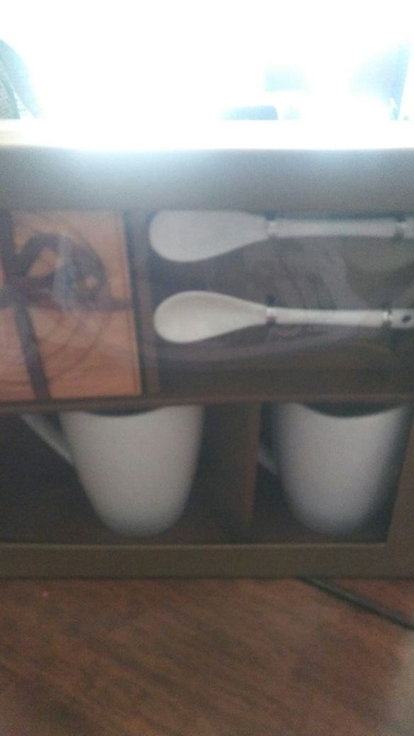 White porcelain coffee cups 2 spoons and coasters set (new)nice as a gift.