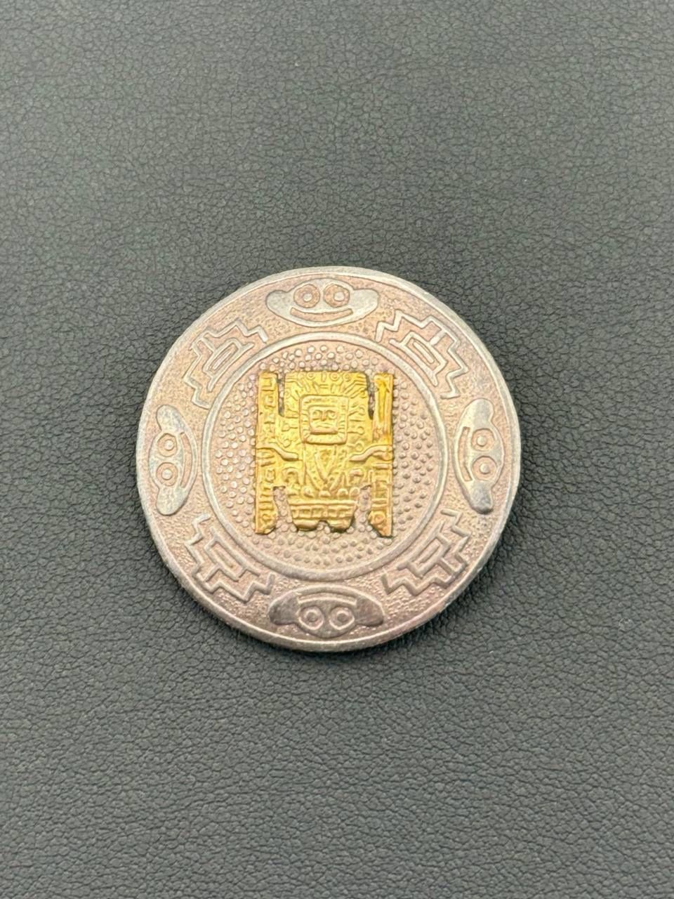 Vintage Peru Sterling Silver and 14k Yellow Gold Circular Pin or Brooch