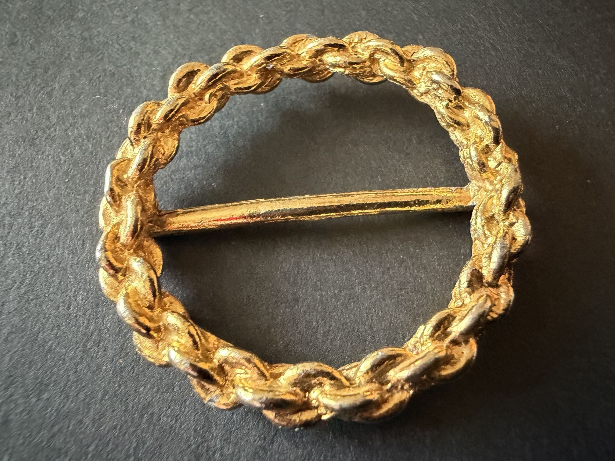 Vintage A Gold Tone Round Braided Rope Brooch Or Scarf Pin. 1.5 Inch Diameter
