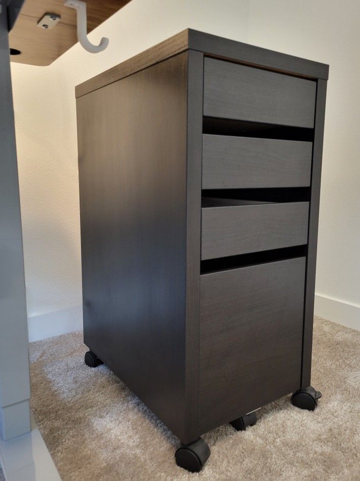 Practical drawer with clean lines, drop-file storage and pull-out stops. Easily movable on wheels. New at IKEA for $80 - see image