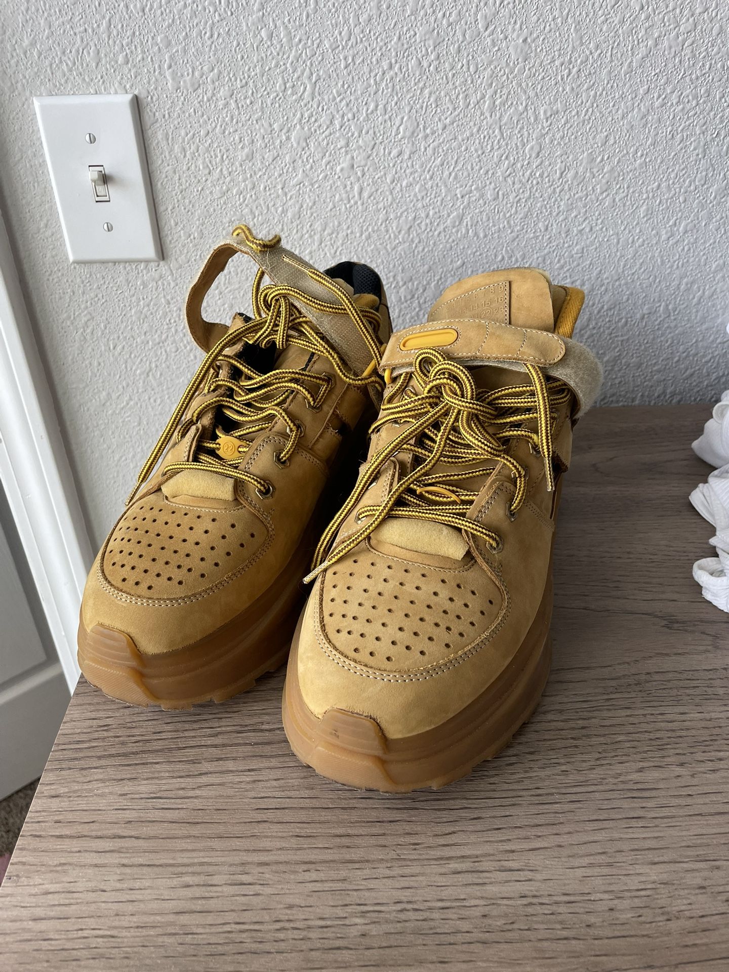**Break the mold with the Maison Margiela Deconstructed Evo Chunky Shoes**—where avant-garde design meets high-fashion craftsmanship. These bold, brown-toned sneakers redefine luxury with their distinctive **deconstructed aesthetic and oversized silhouette**, making them a true statement piece. Whether you're pushing boundaries in streetwear or elevating your collection, this pair delivers unparalleled style and authenticity. **Secure them now and step into next-level fashion!** 🔥👟