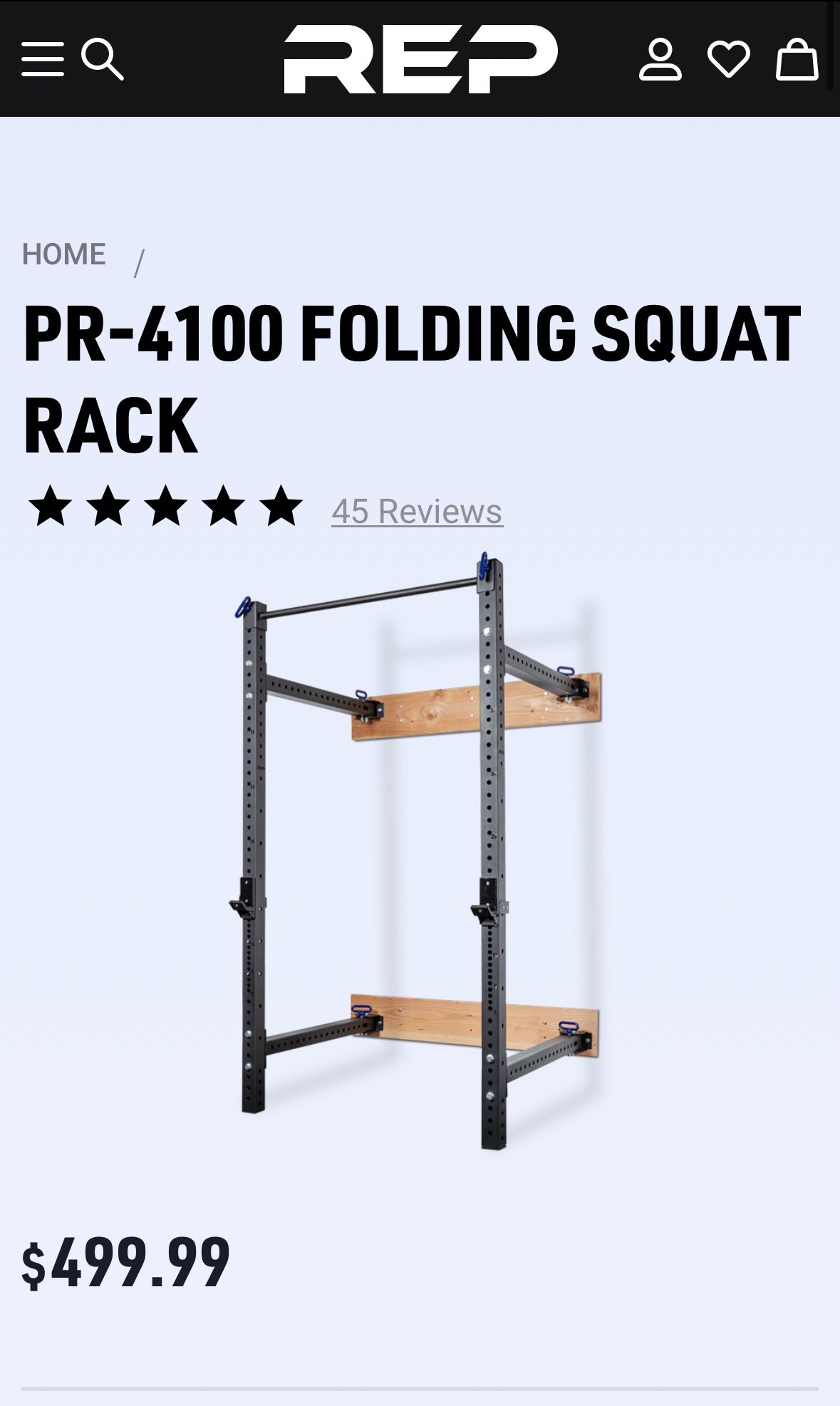 The PR-4100 is a folding wall-mount power rack that creates a functional workout space at home while taking up minimal space. 41” from wall.