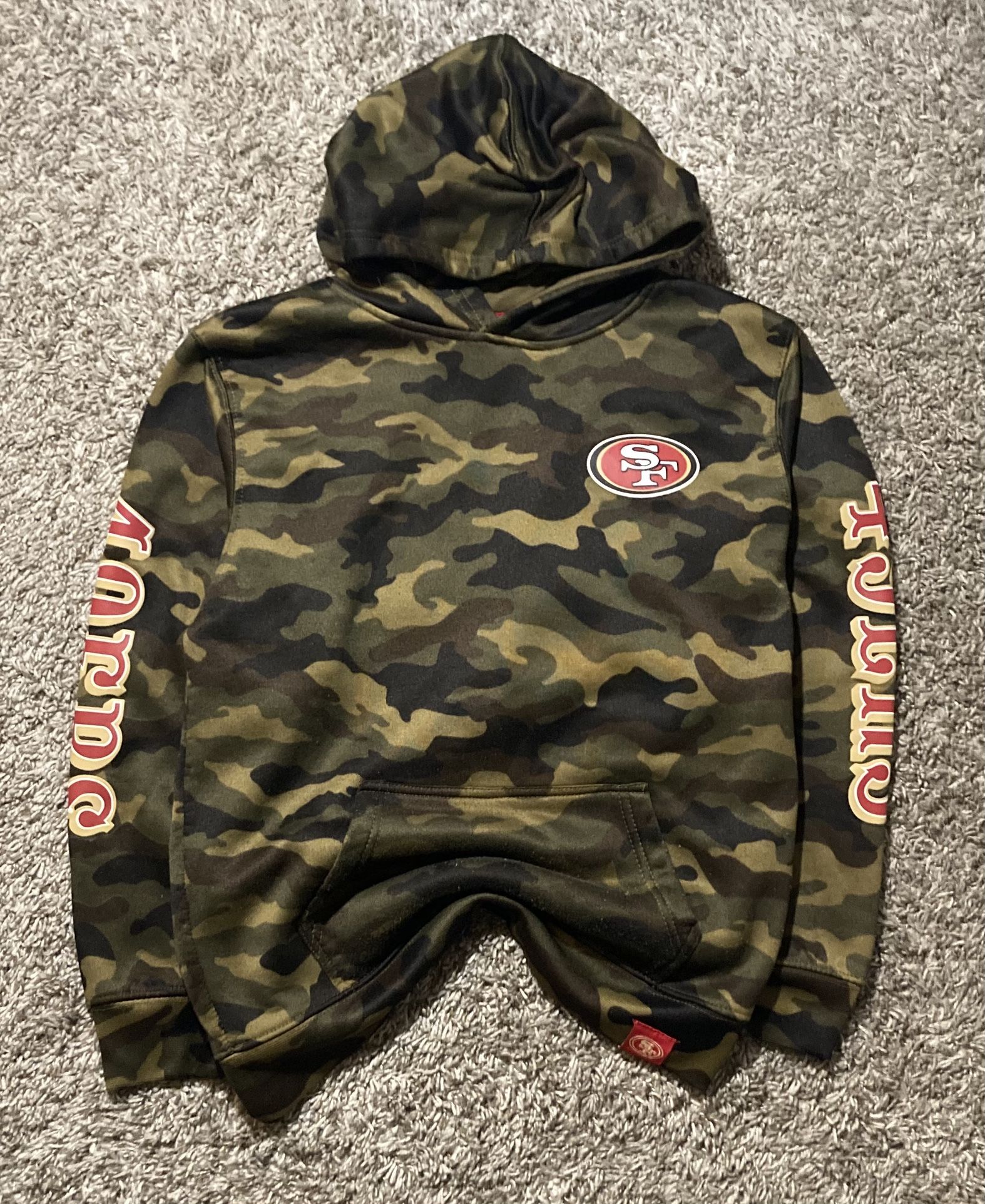 Youth NFL 49ers Hoodie Green Army Camo 100% Polyester Silky-Cotton Vinyl Logo Game Day Size 19-20